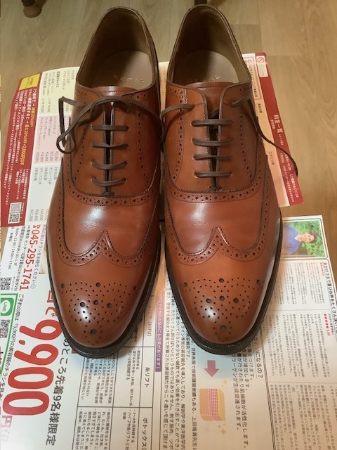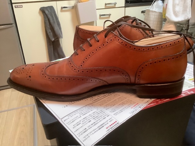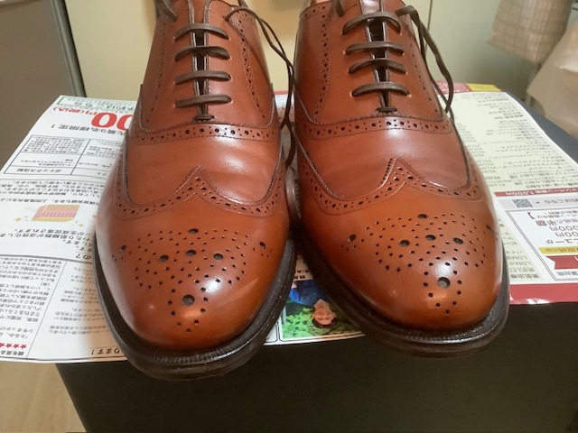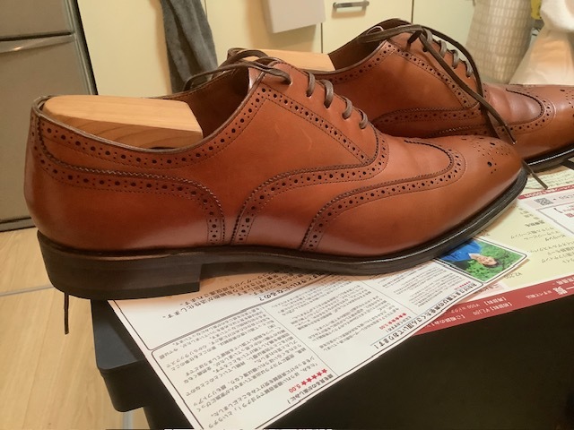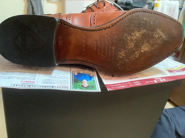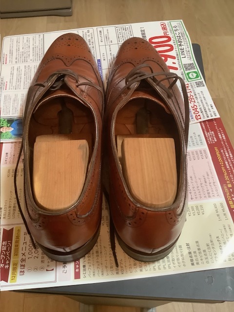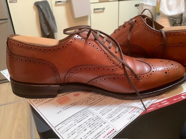 三年ほど前に百貨店で新品購入し、一度近場に履いていったのみで画像のシューズキーパーを入れて保管していたものです。(シューズキーパーは付属しません)未使用に近い美品とは思いますが、新品未使用という訳ではありませんので画像で判断できない方や状態にシビアな方は入札をお控え下さい。中古につきノークレームノーリターンでお願いします。新規の方と評価90%以下の方の入札をお断りします。落札されても落札者都合キャンセルで対応します。