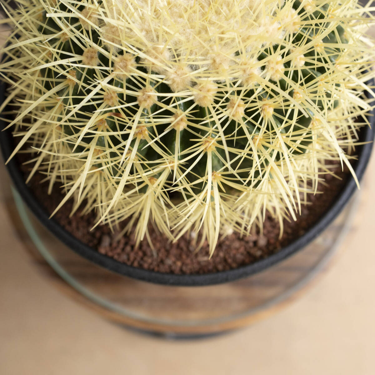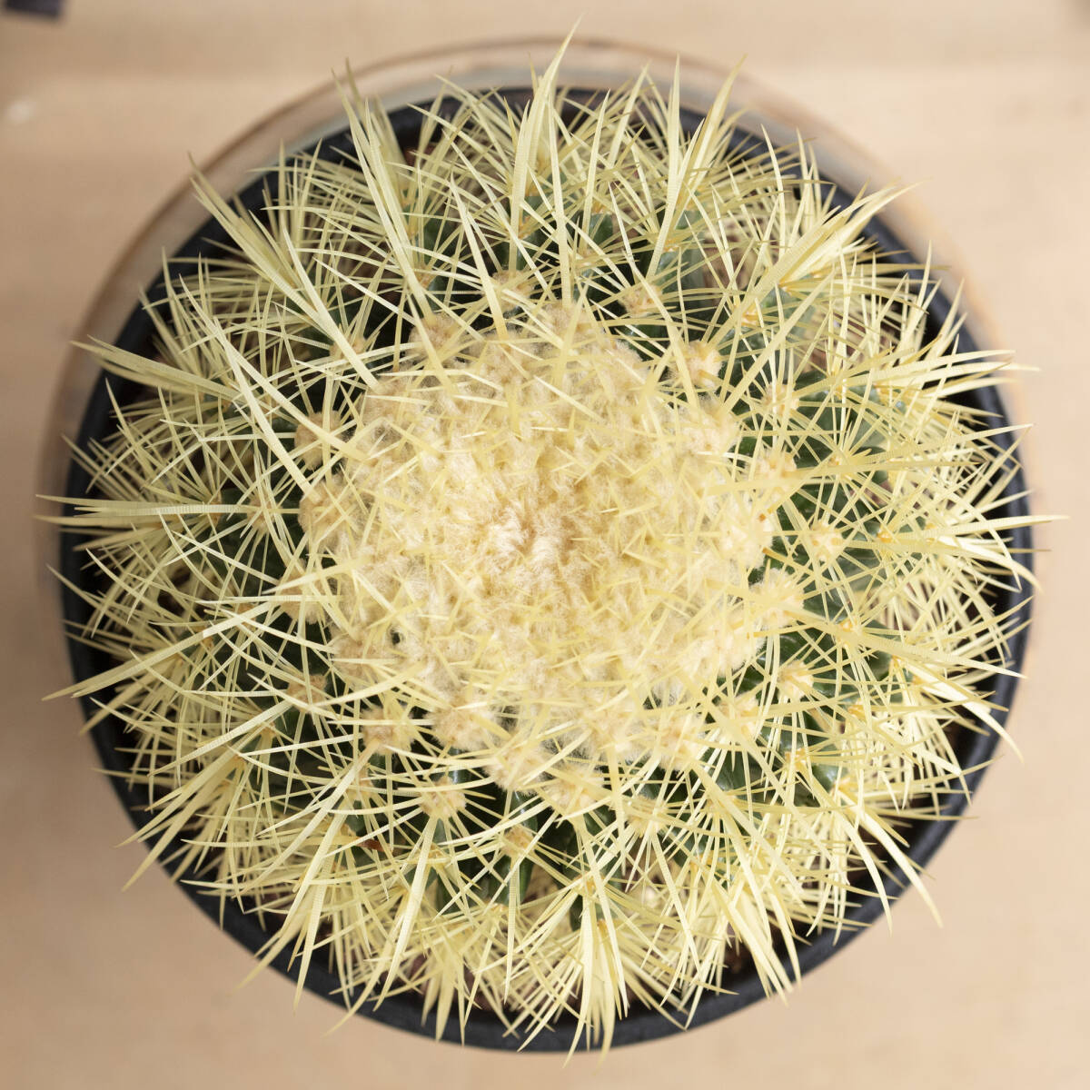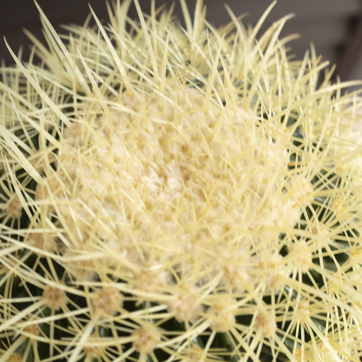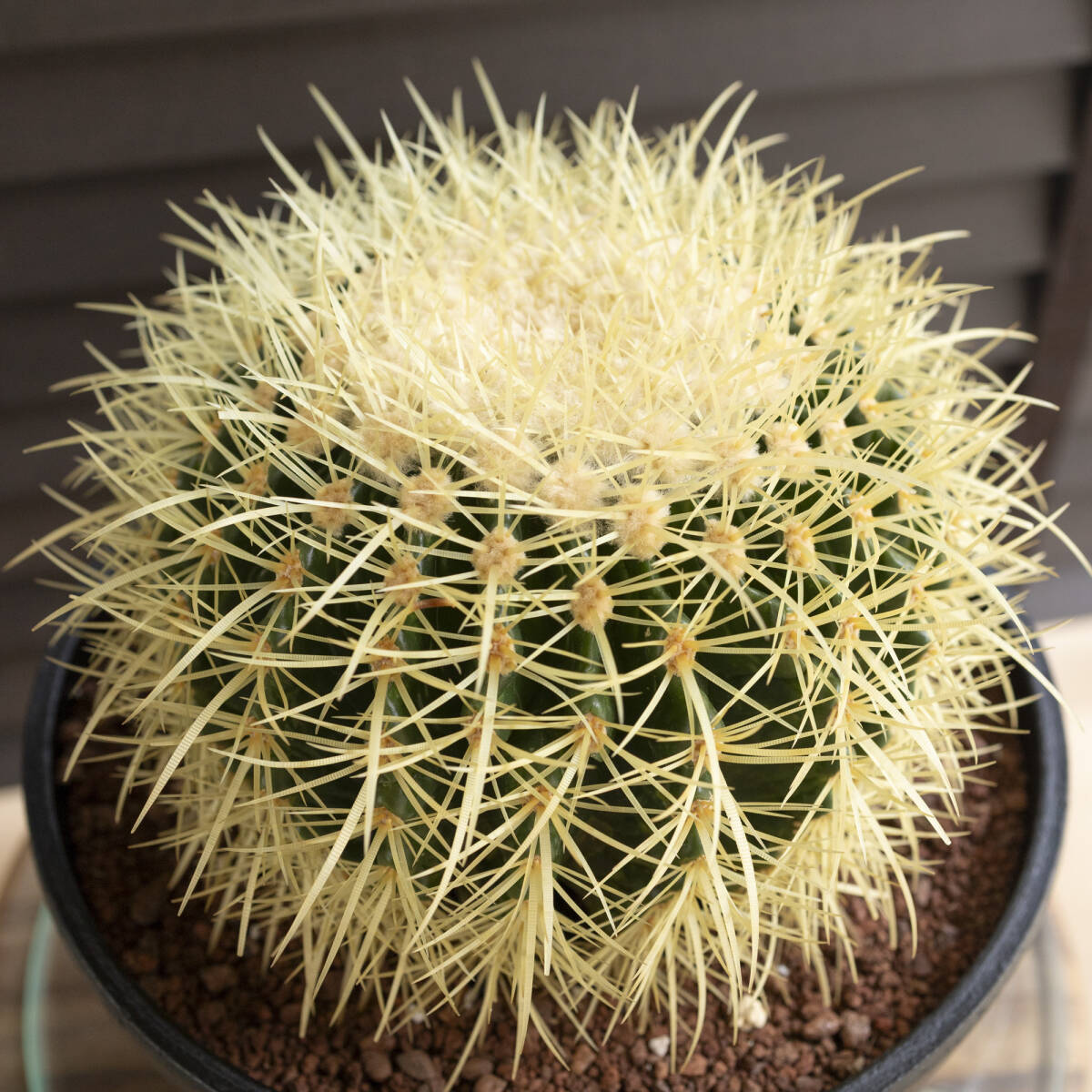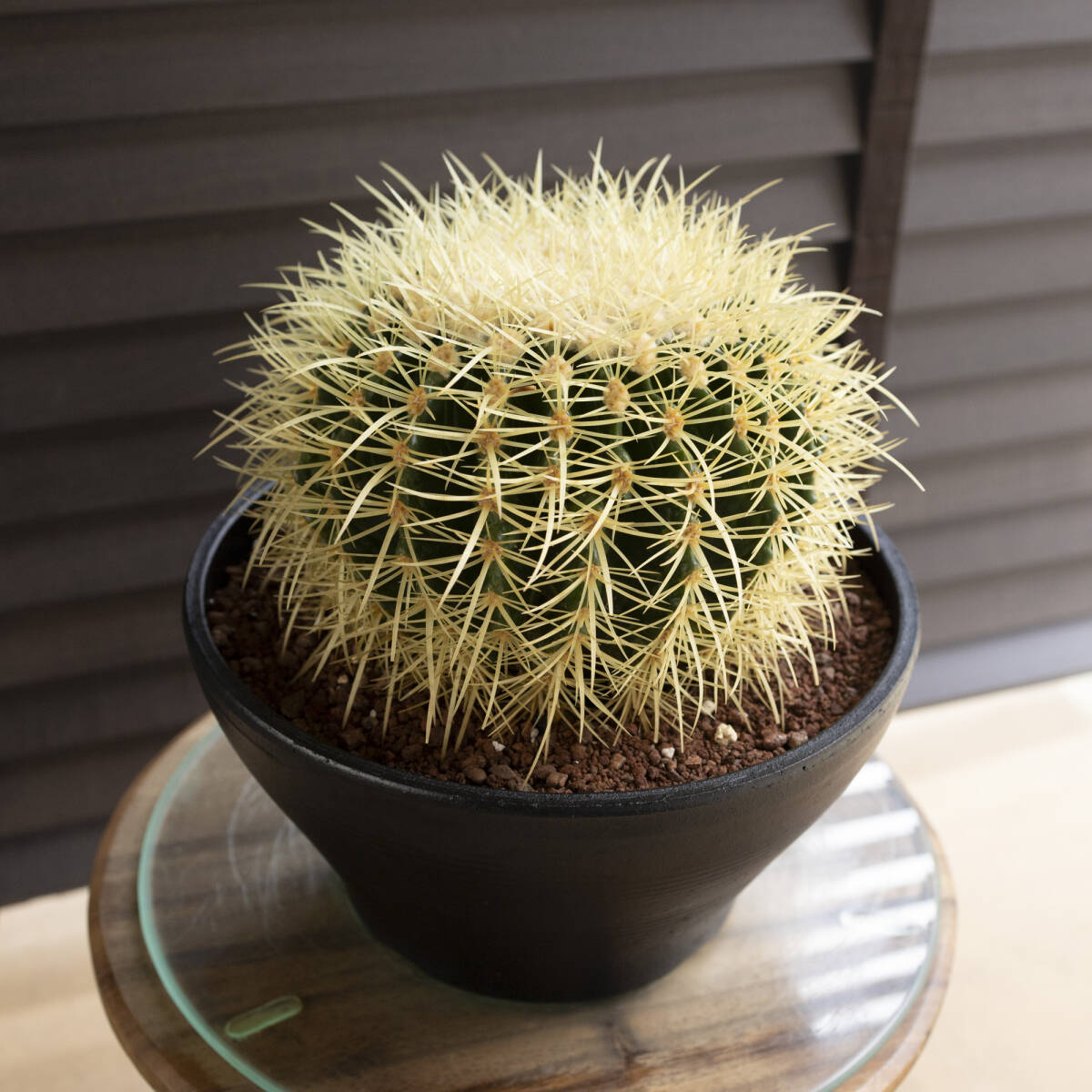 Echinocactus grusoniiという名の品種で黄金色の鋭いトゲで覆われているのが特徴的。