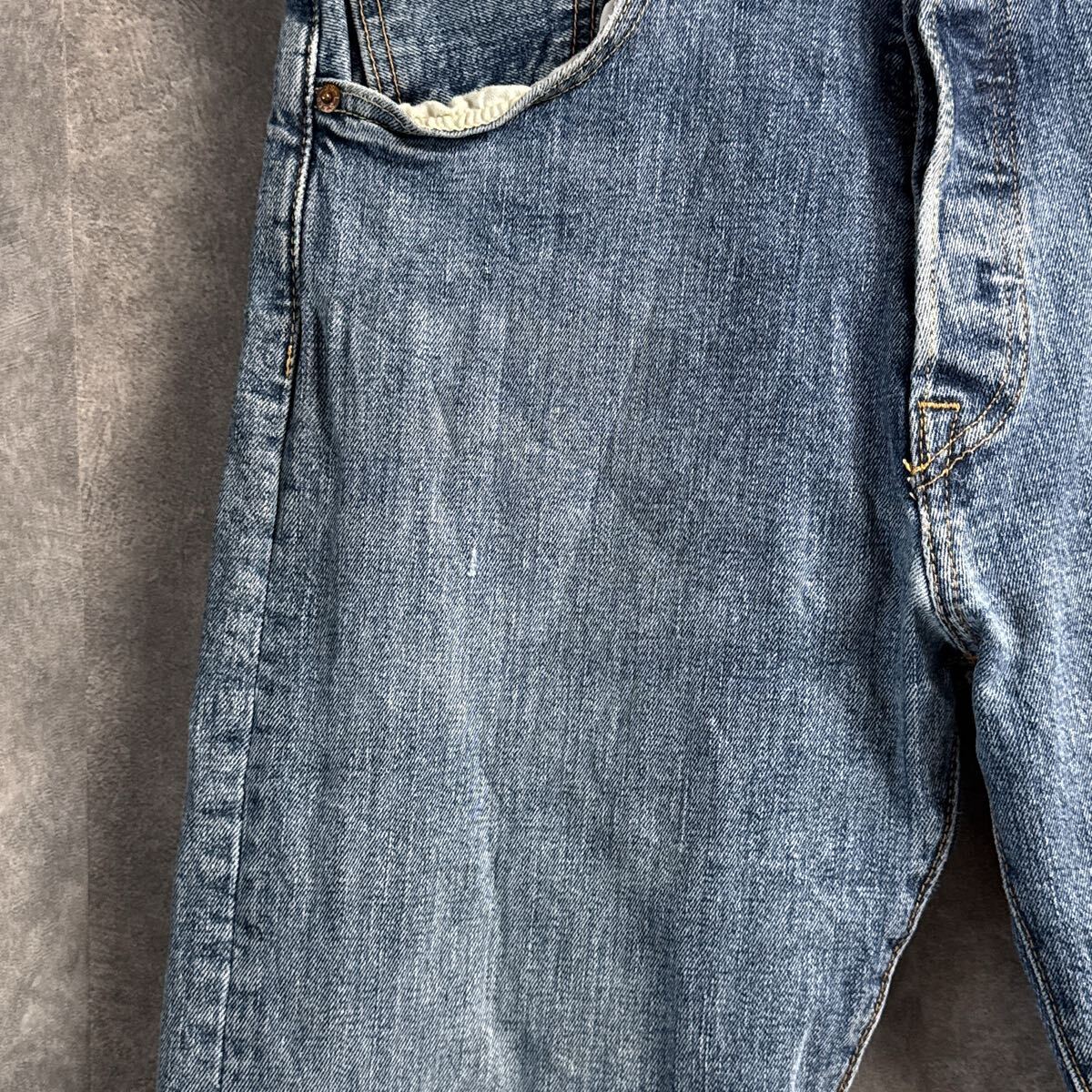 柔らかく馴染んだ生地と縦落ちの表情が、長年愛用されたデニム特有の風合いを感じさせます。