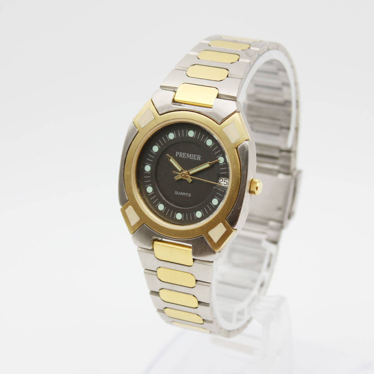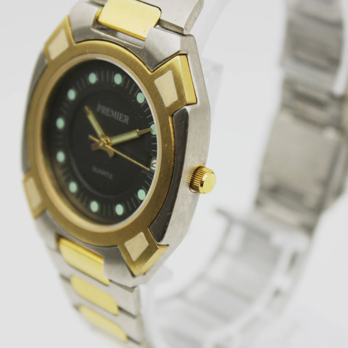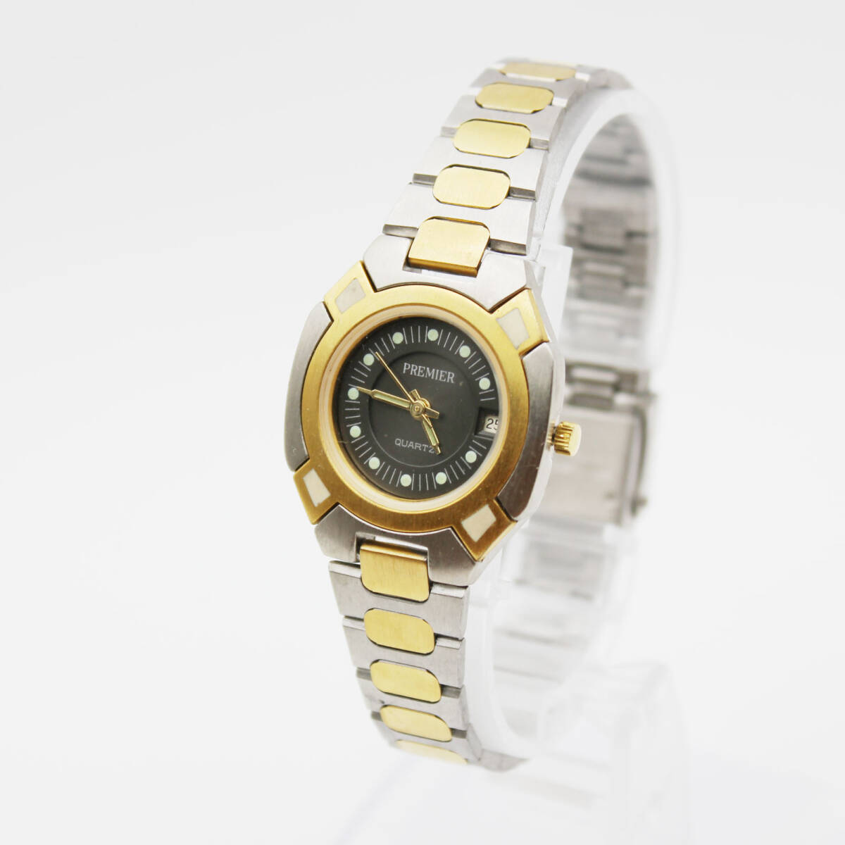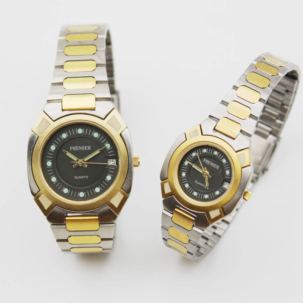 W251025-30 PREMIER プレミア ペアウォッチ メンズ レディース 腕時計 クォーツ デイト ジャンク 文字盤チャコールグレー コンビカラー