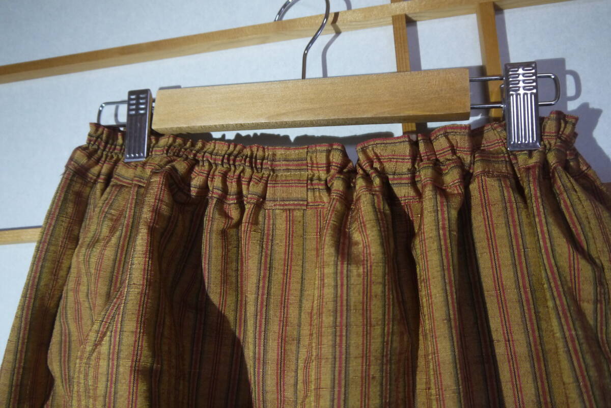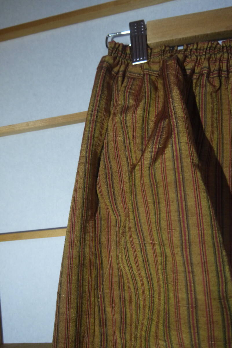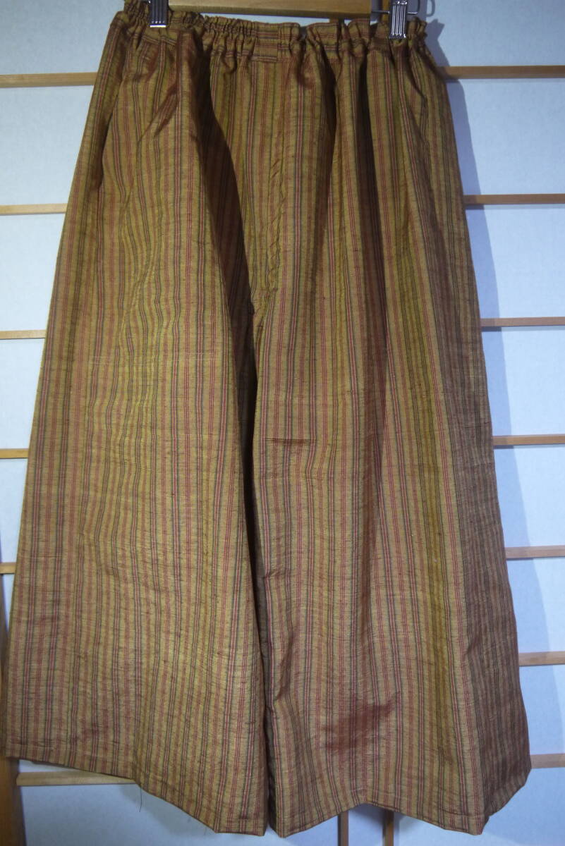 ★D&C着物リメイク・ワイドパンツ・絹・手織り紬・桑茶色縦縞 ★