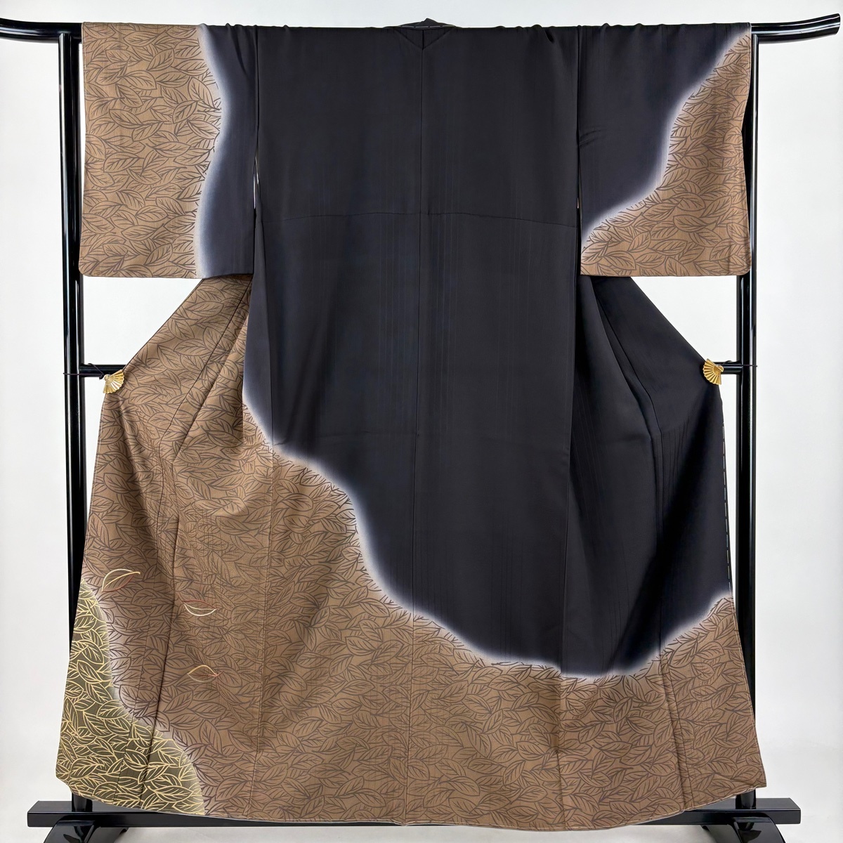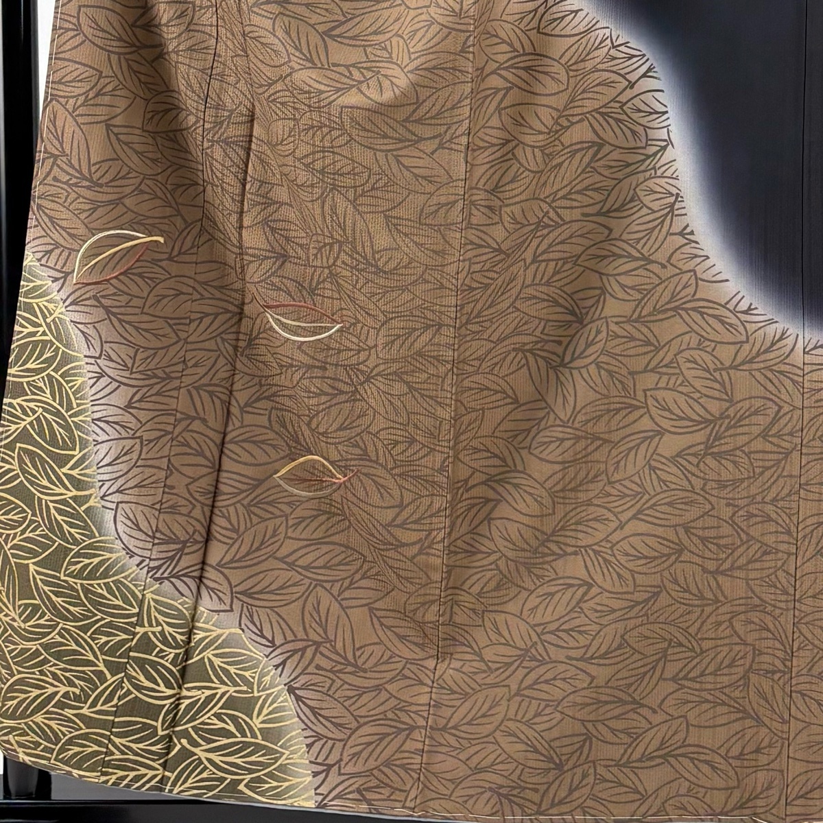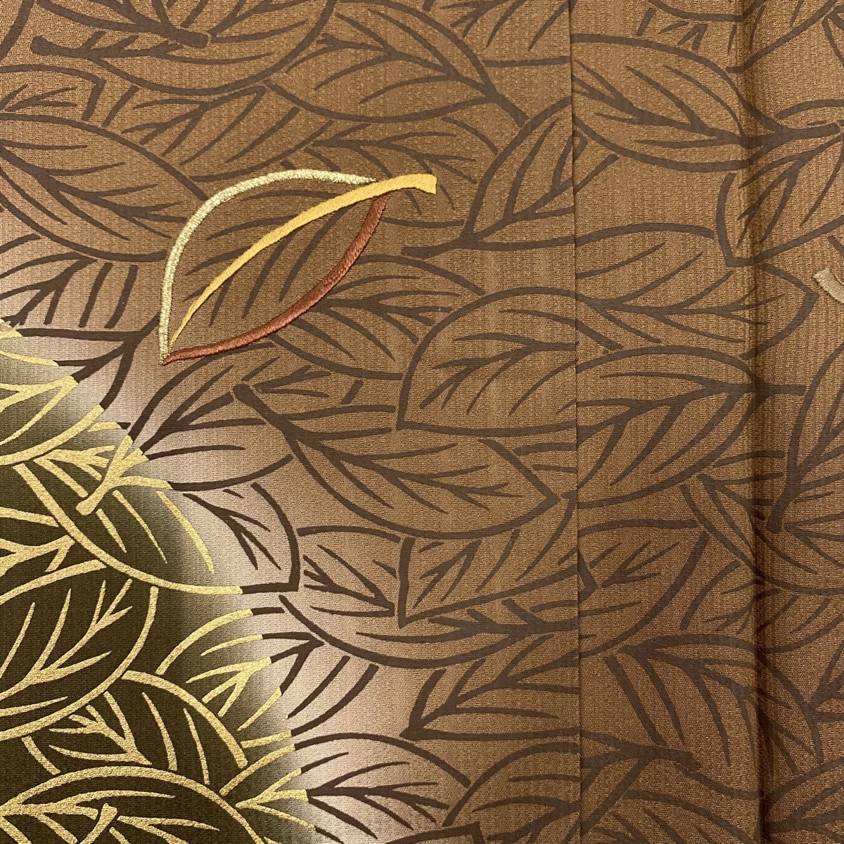 | 訪問着 美品 名品 葉 金糸 金彩 茶色 袷 身丈159 裄丈65 M 正絹 【中古】 |