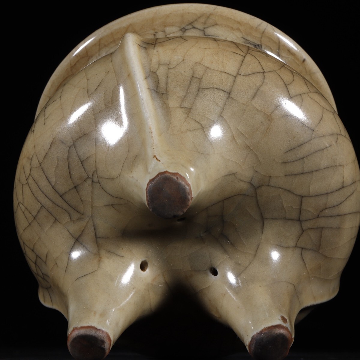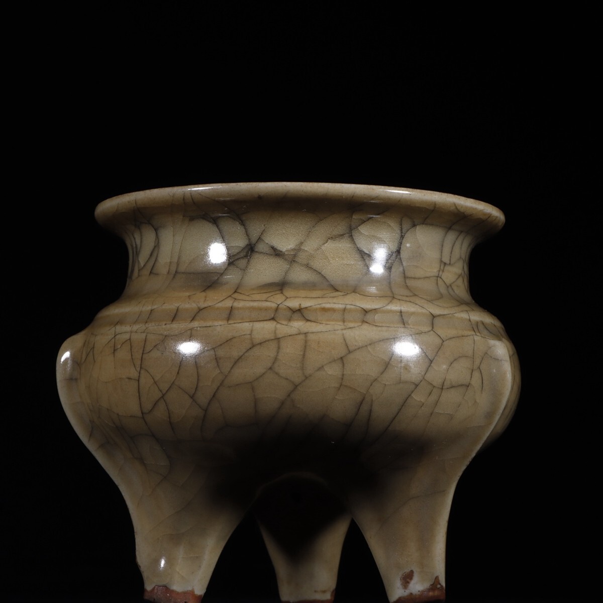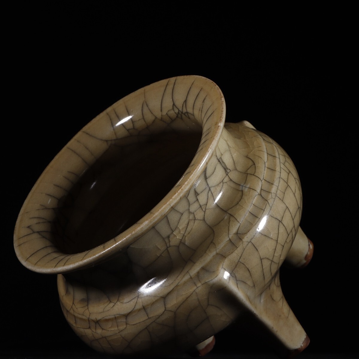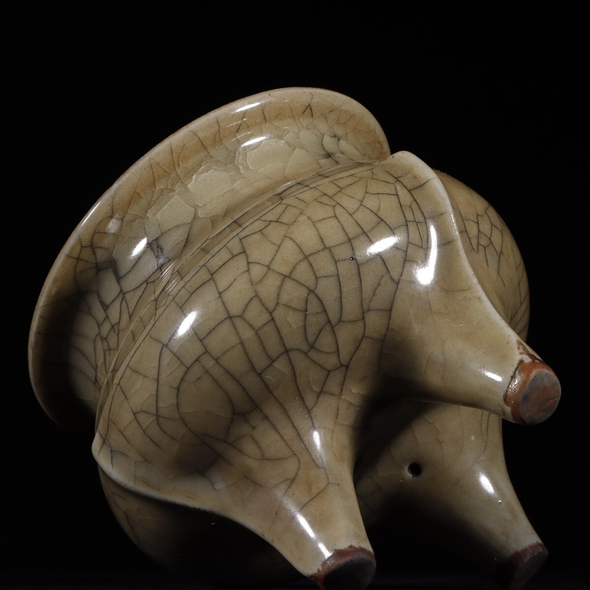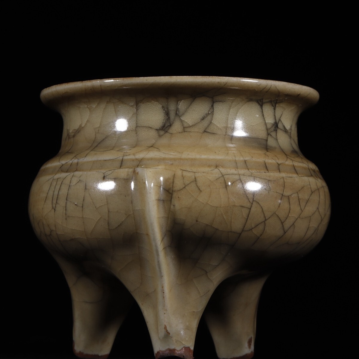 「宋 官窯 陶磁器 黄釉 氷裂紋 鬲式爐」染付 置物 擺件 古賞物 中国古美術 旧蔵出