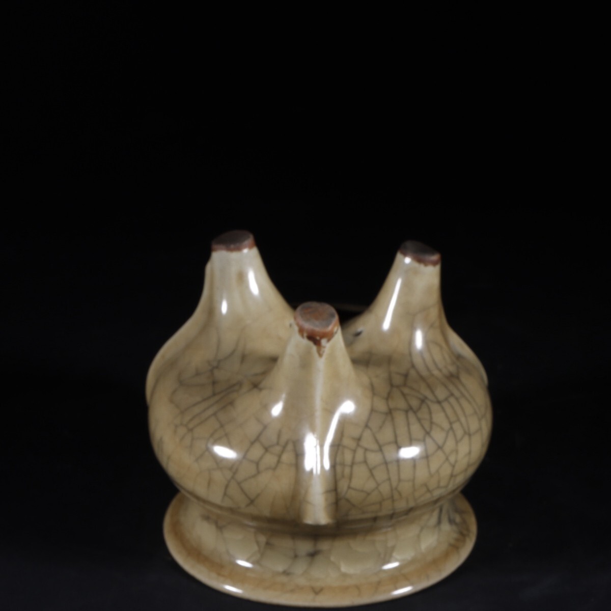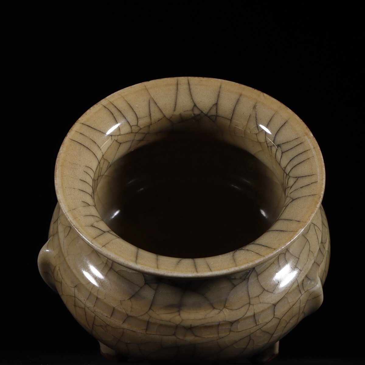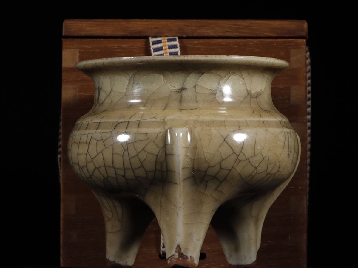 「宋 官窯 陶磁器 黄釉 氷裂紋 鬲式爐」染付 置物 擺件 古賞物 中国古美術 旧蔵出