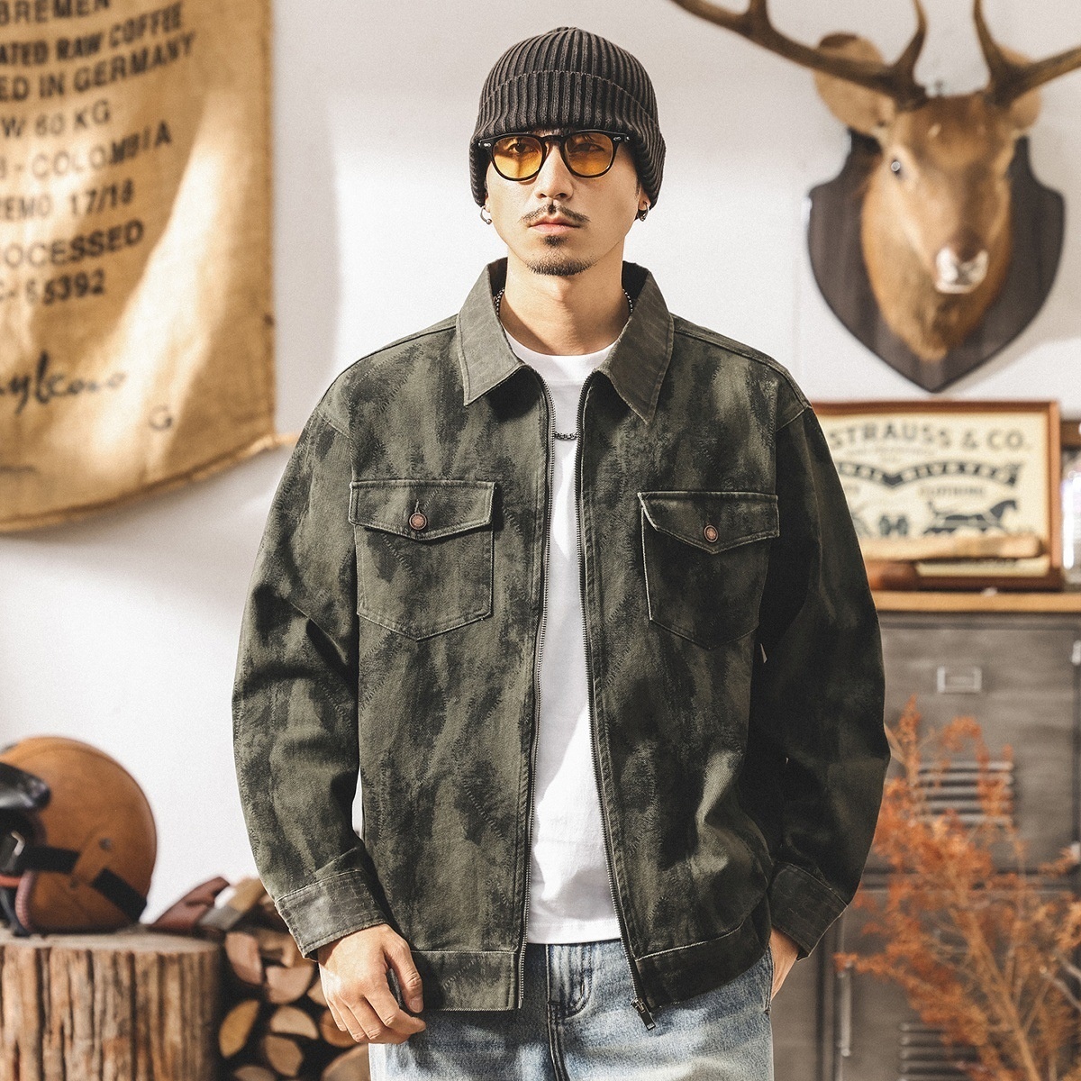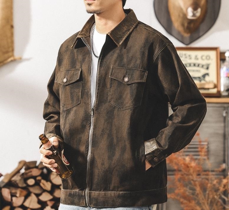 ワークジャケット レトロ メンズ*新品 カーゴジャケット アメカジ 春服秋服 ジャンパー ライダース ブルゾン【1505】キャメル 5XL