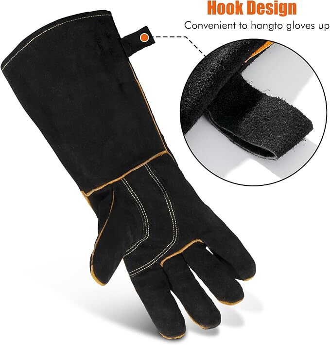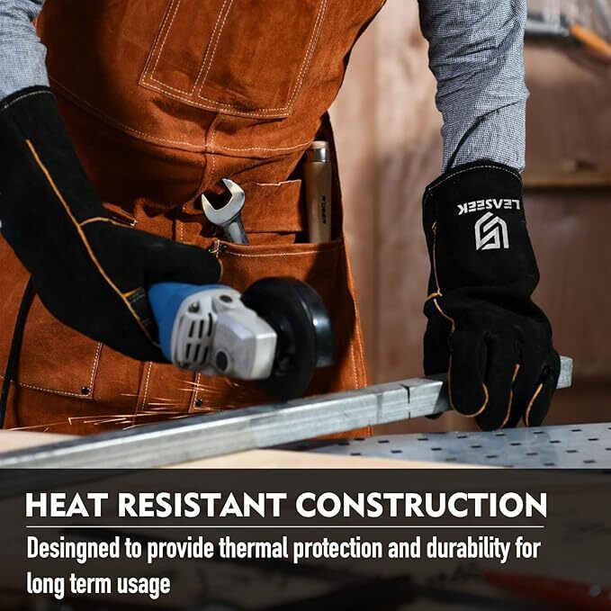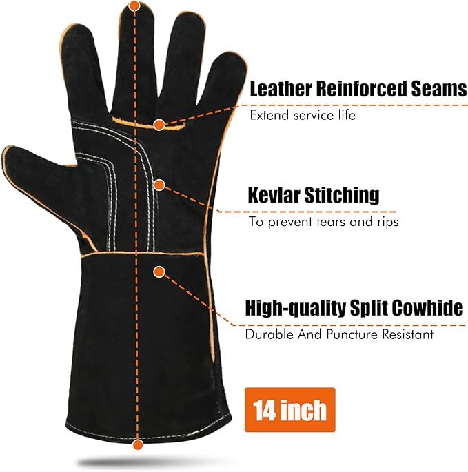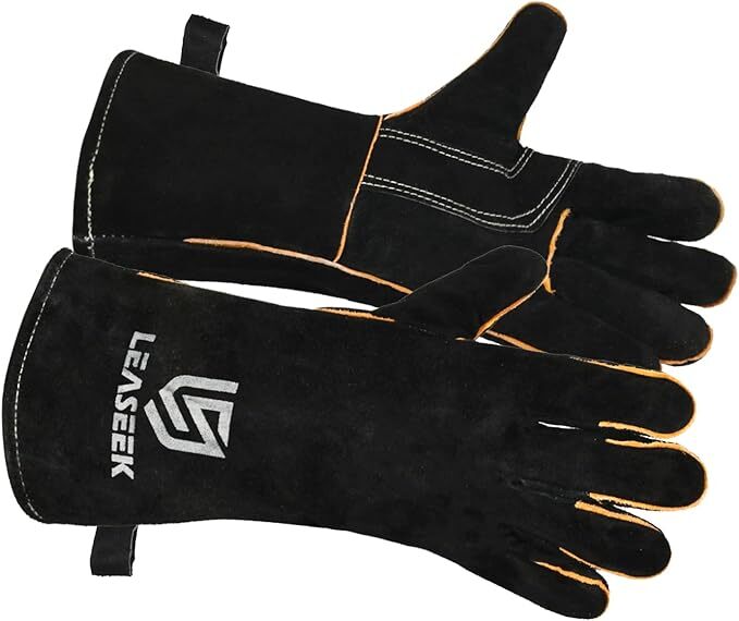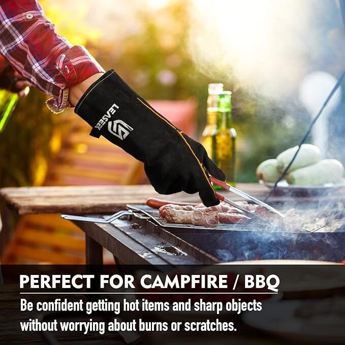 14インチサイズ LeaSeek 耐熱グローブ 本革 牛革 防火手袋 溶接/BBQ/ストーブ/焚き火台/薪ストーブ対応 アウトドア用 作業革手袋