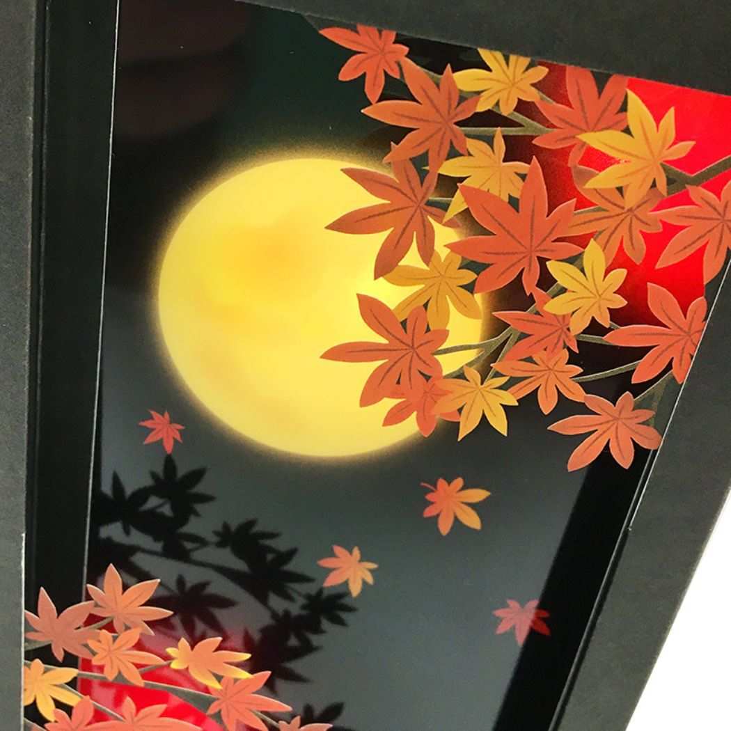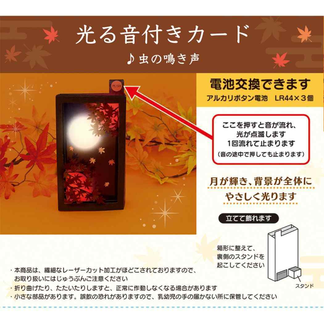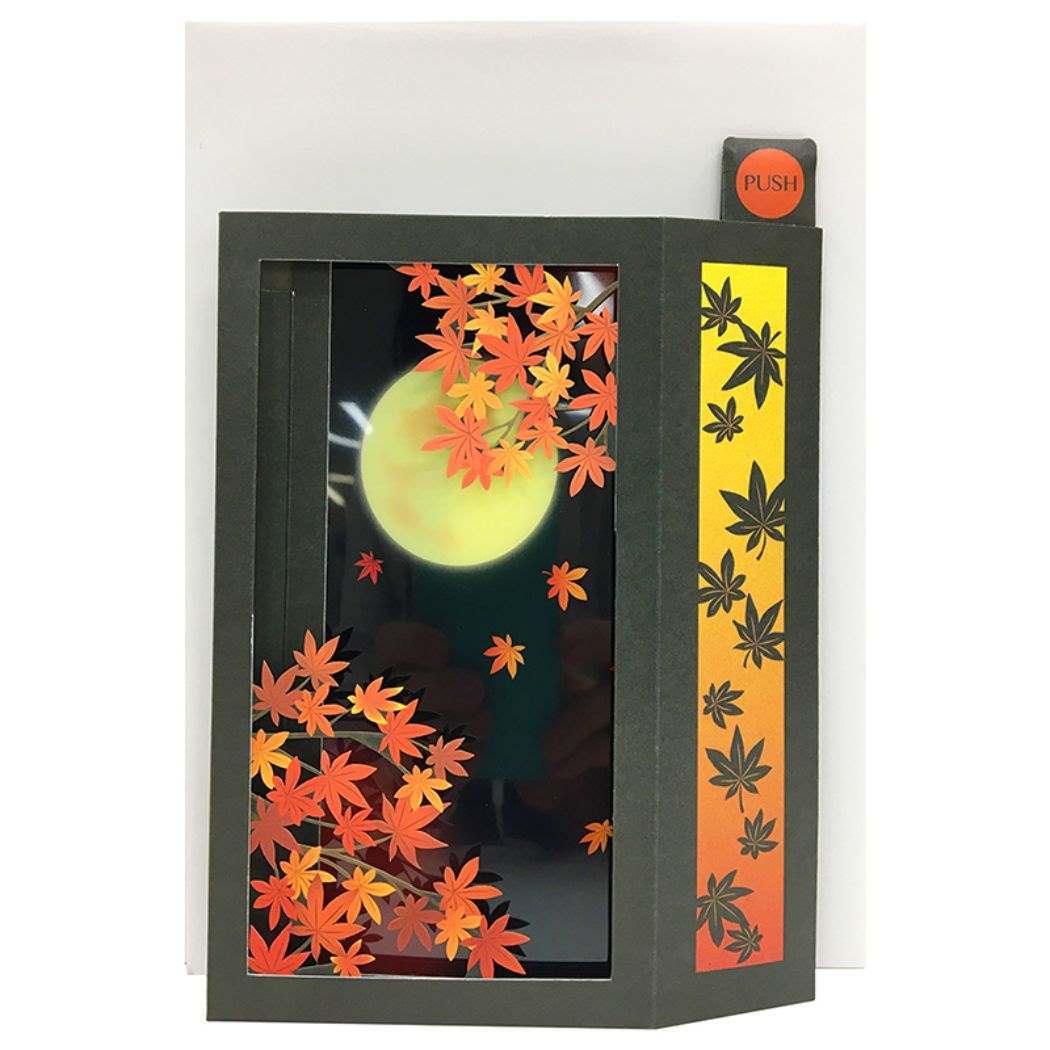グリーティングカード アキ JAU 24-3 立体ライト&サウンドカード 秋 ライト&サウンド 紅葉と月 サンリオ