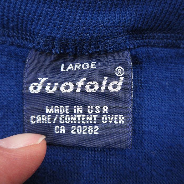 【商品名】 L★古着 duofold 長袖 ビンテージ Tシャツ メンズ 90年代 90s 無地 クルーネック USA製 青