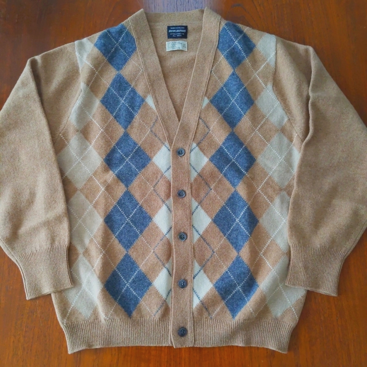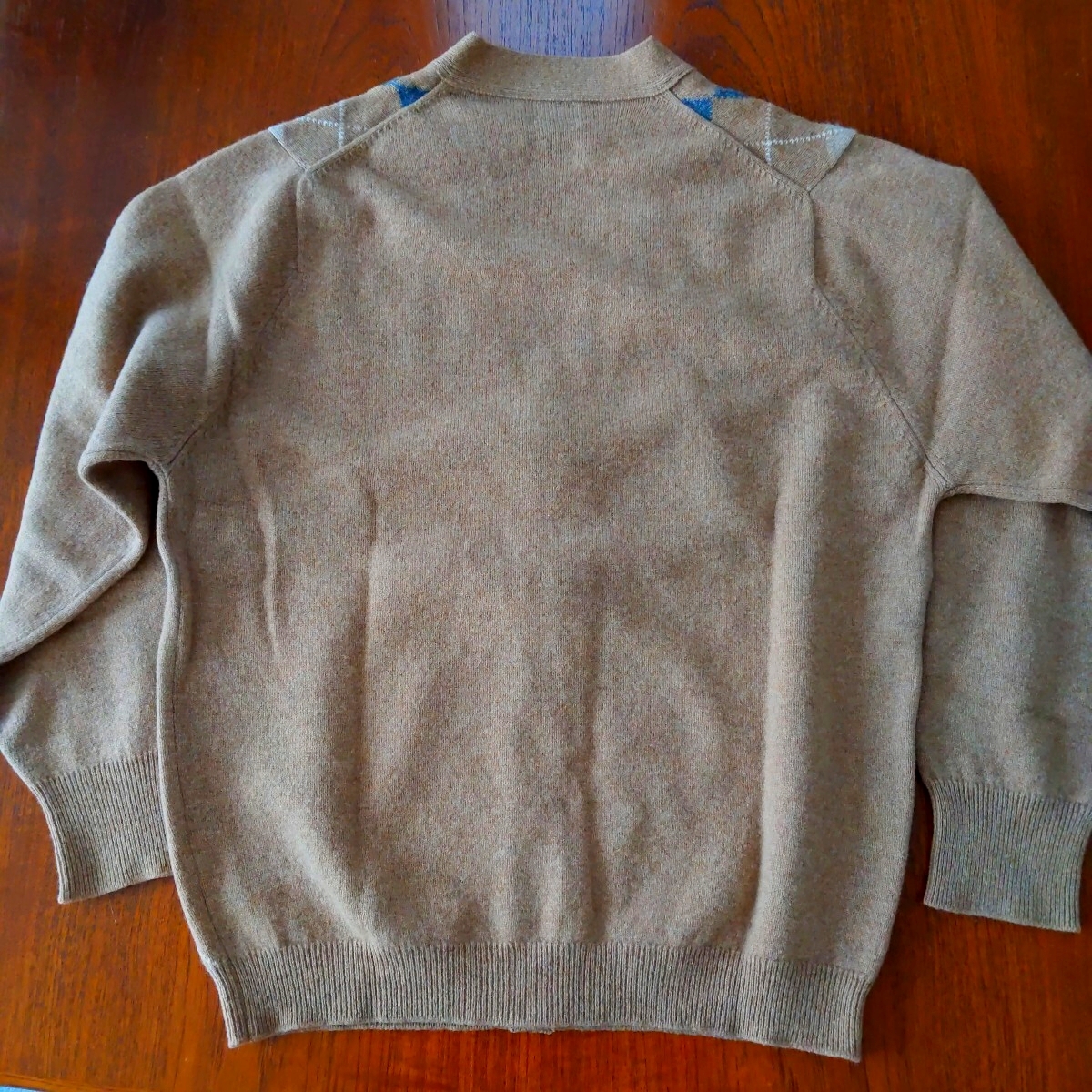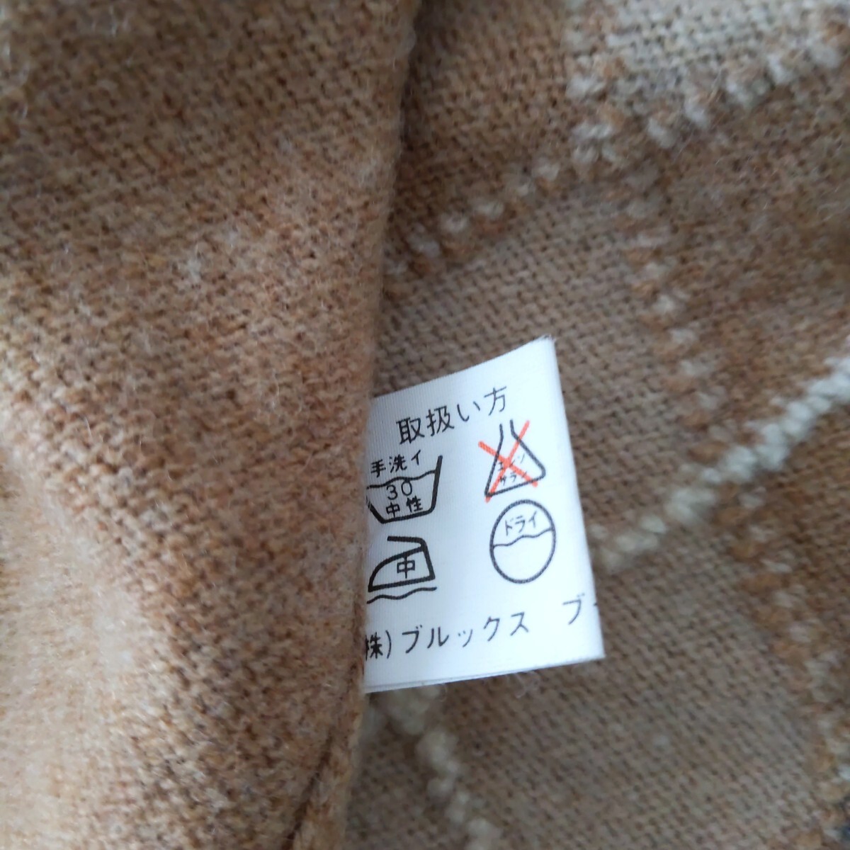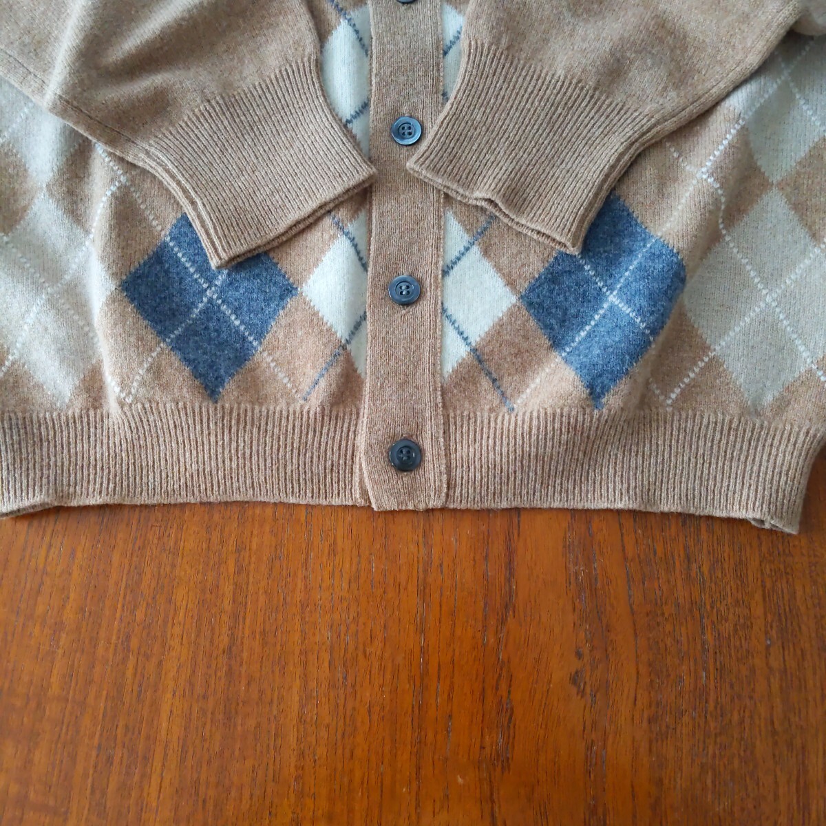 生地はウール100%。ベージュ系のアーガイル。ベースのベージュの色は六枚目の写真が近いと思います。