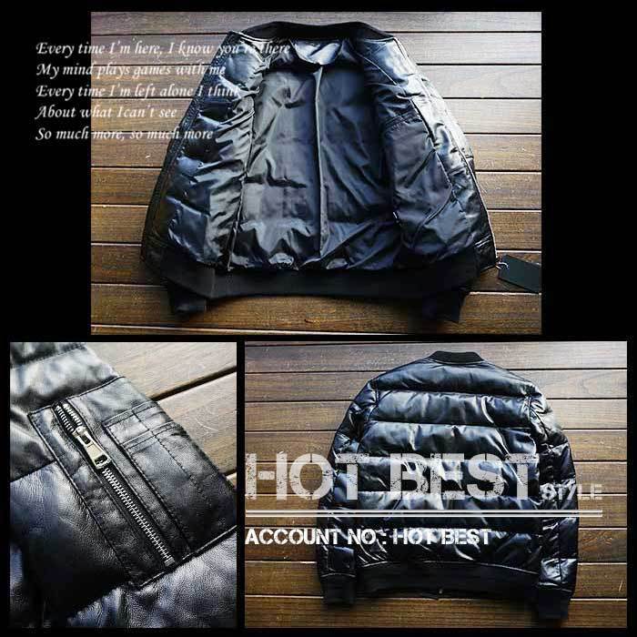 表地は軽くて柔らかいイタリアンシープスキン、保温材はダウン90%、フェザー10%の混合率で作られたMA-1タイプのレザーダウンジャケットです。襟、袖、裾がリブ仕様で風の侵入を防ぎます。