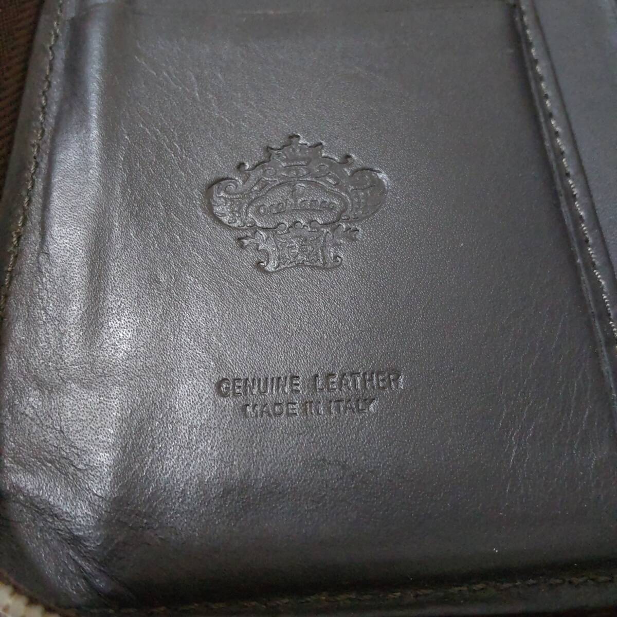 右側のカード入れ部分にシワがあり、上部の布が傷んで変形しています。