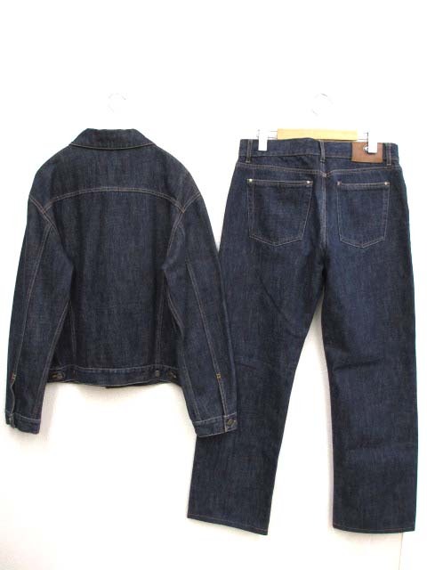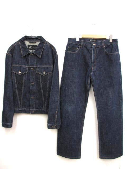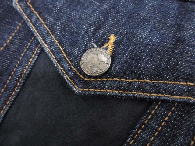 【Y】美品 ハンティングワールド レザー切替デニムジャケット パンツ セットアップ /B7