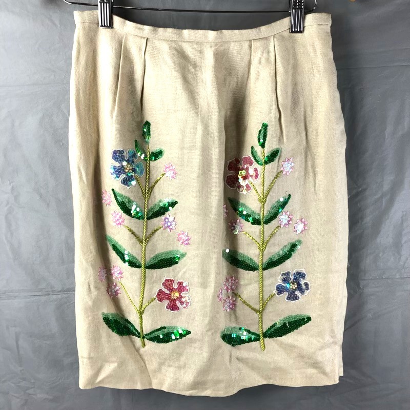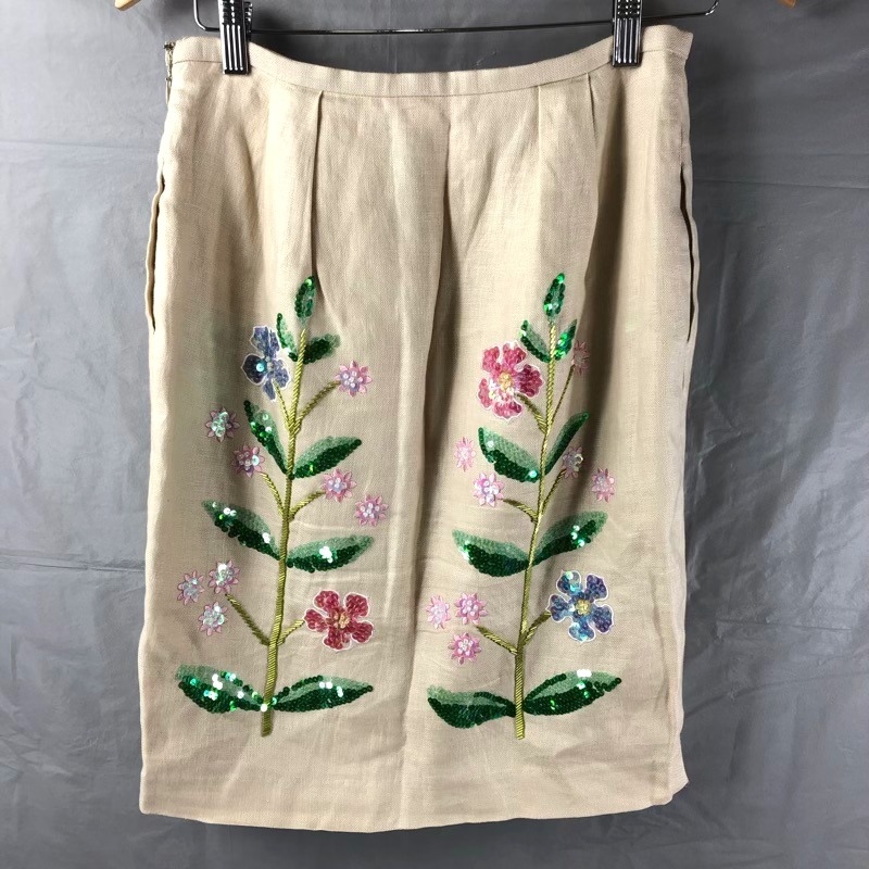| 商品名 | ジュンコシマダ JUNKO SHIMADA スカート 花柄 スパンコール ビーズ 麻 ベージュ系 38サイズ 923104 |