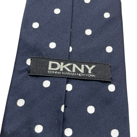 ダナキャランニューヨーク DKNY ネクタイ レギュラータイ 総柄 水玉 ドット 絹 シルク 黒 ブラック シルバー メンズ