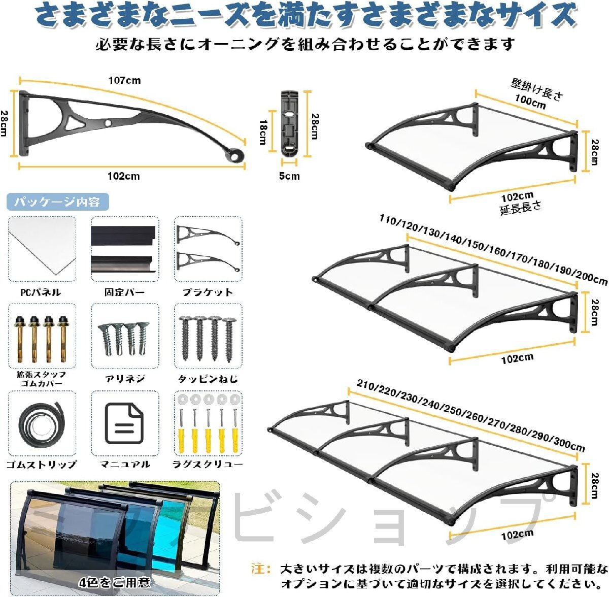 簡単な組み立てと設置: ひさし 雨よけ 後付けには、すべての必要な部品と詳細な組み立て説明書が含まれており、DIY に適したデザインで素早い組み立てが可能ですが。最良の結果を得るには 2 人で組み立てることをお勧めします。インストール中にご質問がある場合は、当社のサポートチームがお手伝いいたします