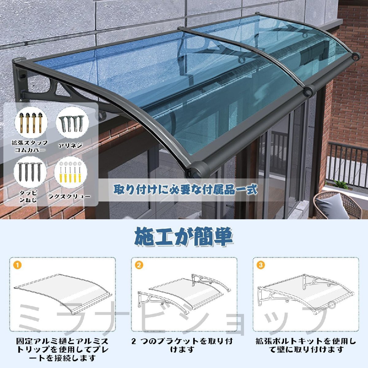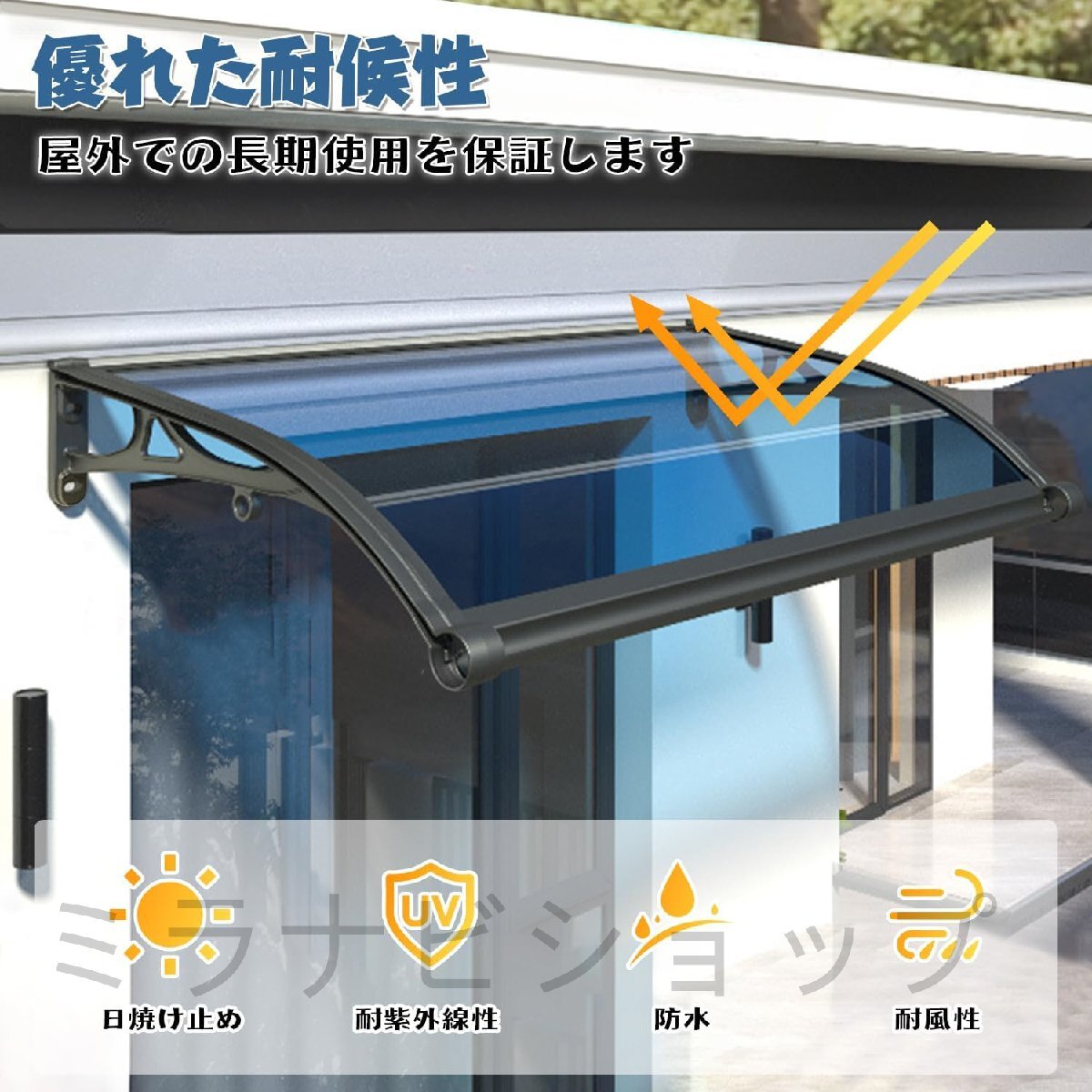 屋根庇 ひさし 雨よけ アルミニウム合金ブラケットと PCポリカーボネート オーニング 静かな排水 紫外線日焼け止め ブルー 80*300CM