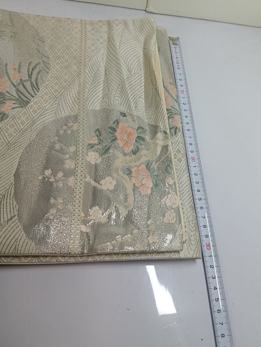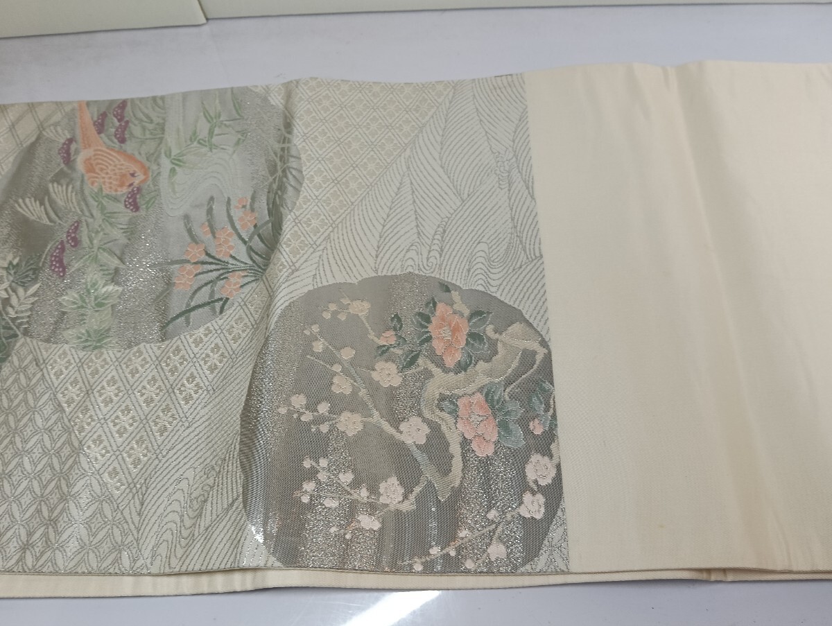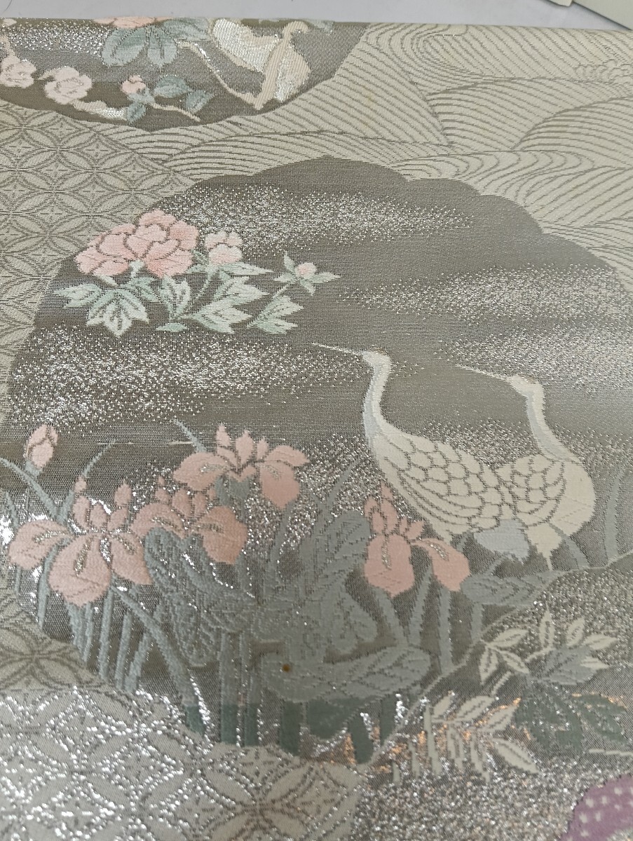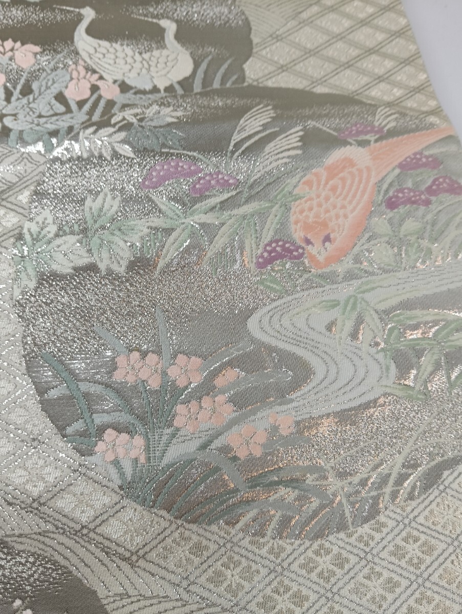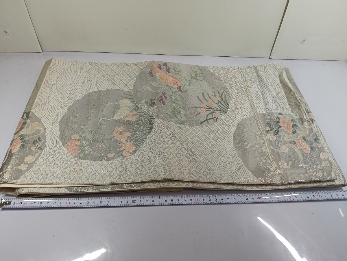 ・仕様の要点:扇面花鳥図(鶴、雉、梅、牡丹、菊、萩、流水など)、銀糸(ラメ糸)使用