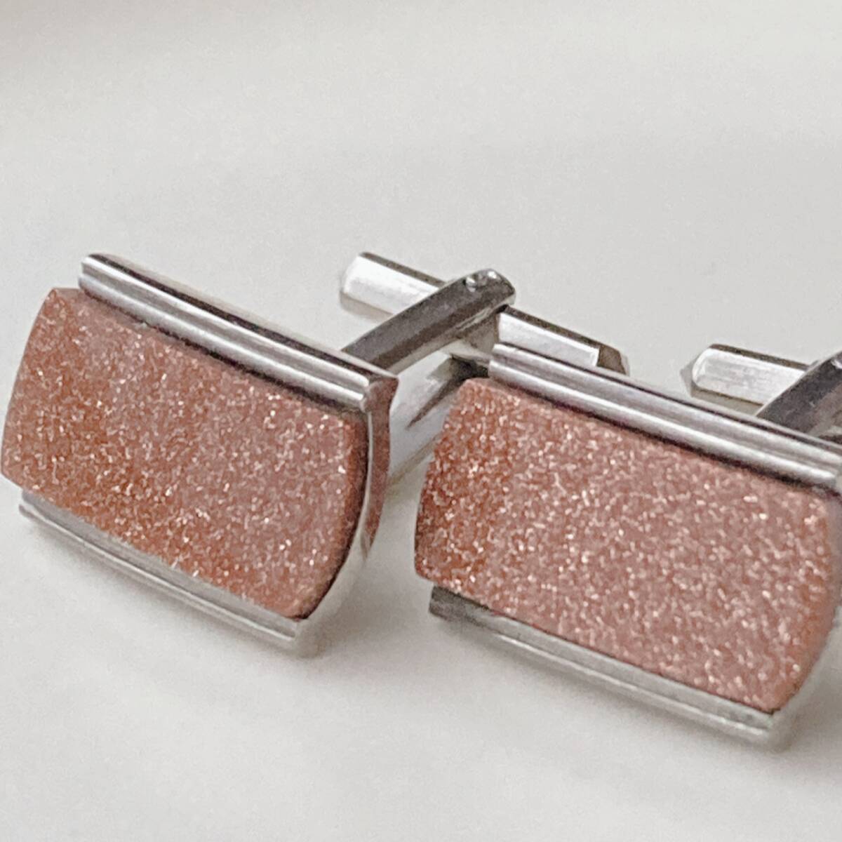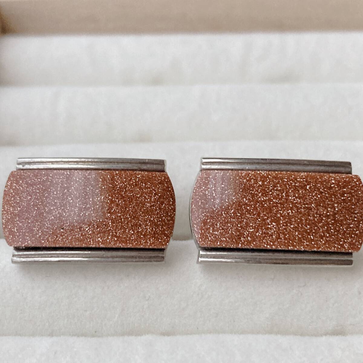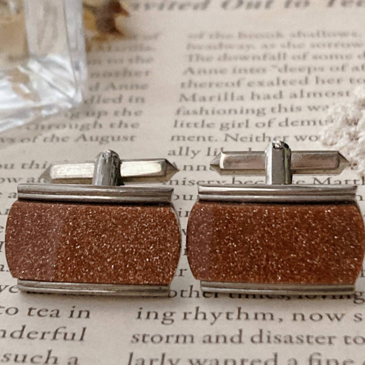 ヴィンテージカフスボタン グリッター ブラウン PAT 448868刻印 カフリンクス☆Vintage jewelry accessoriesF0354