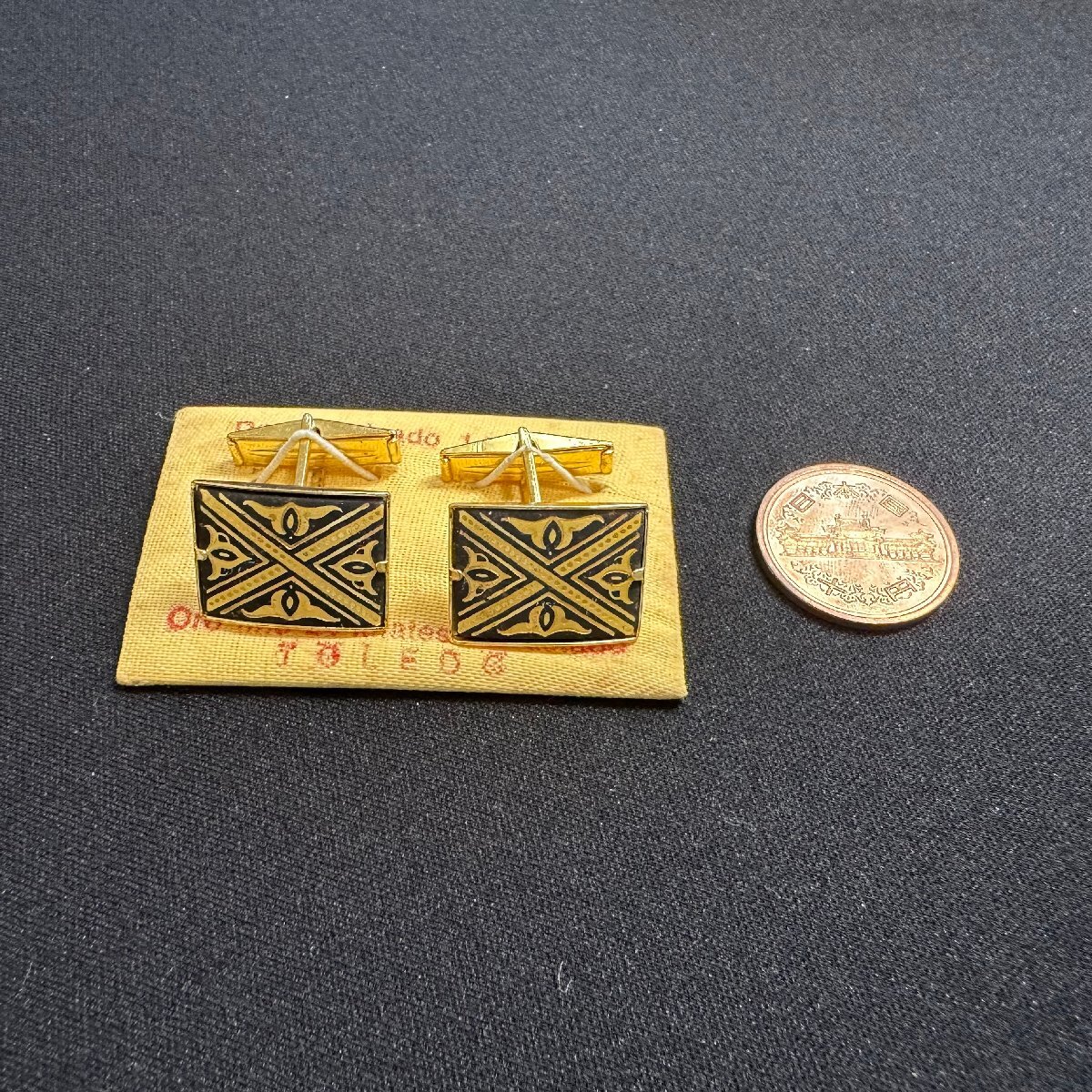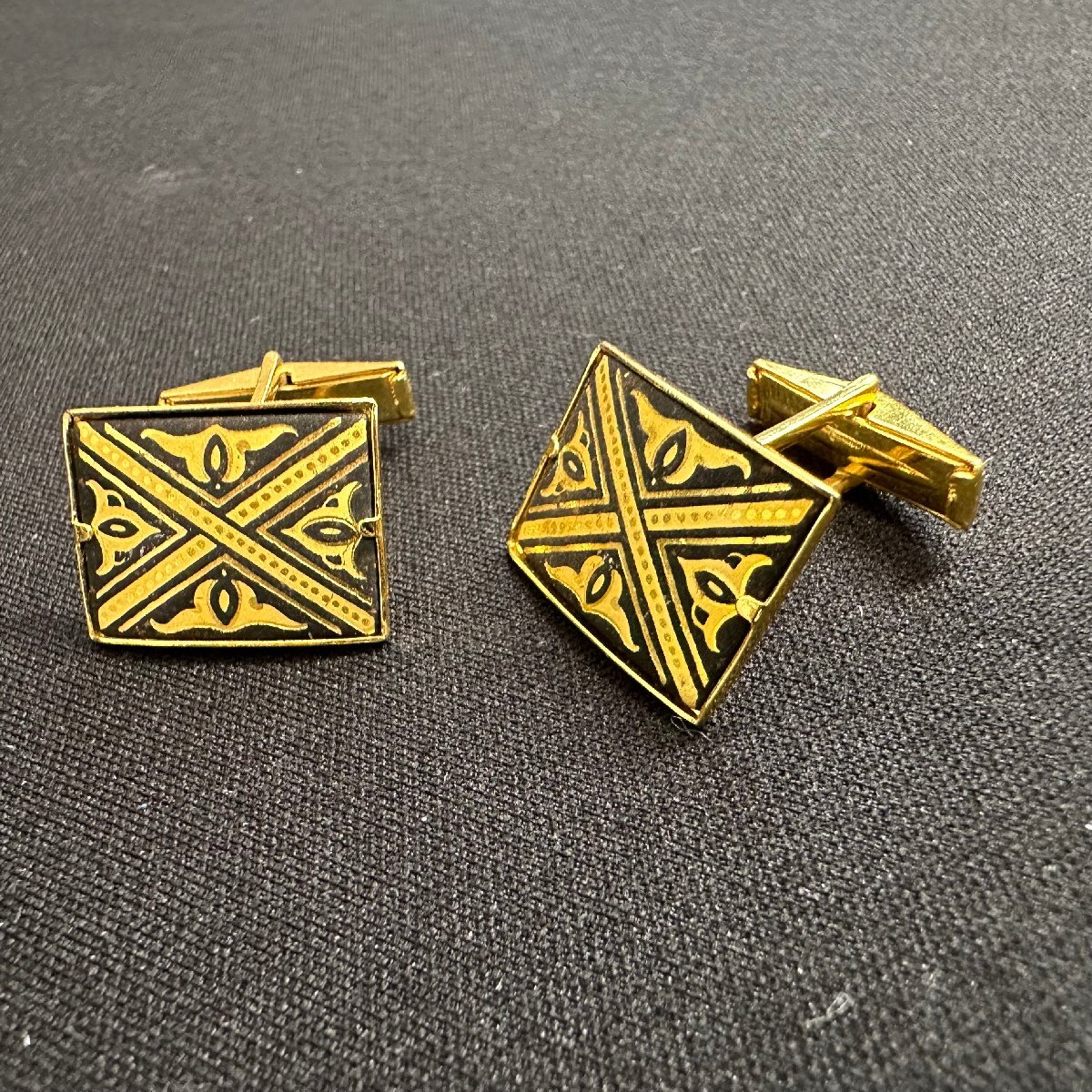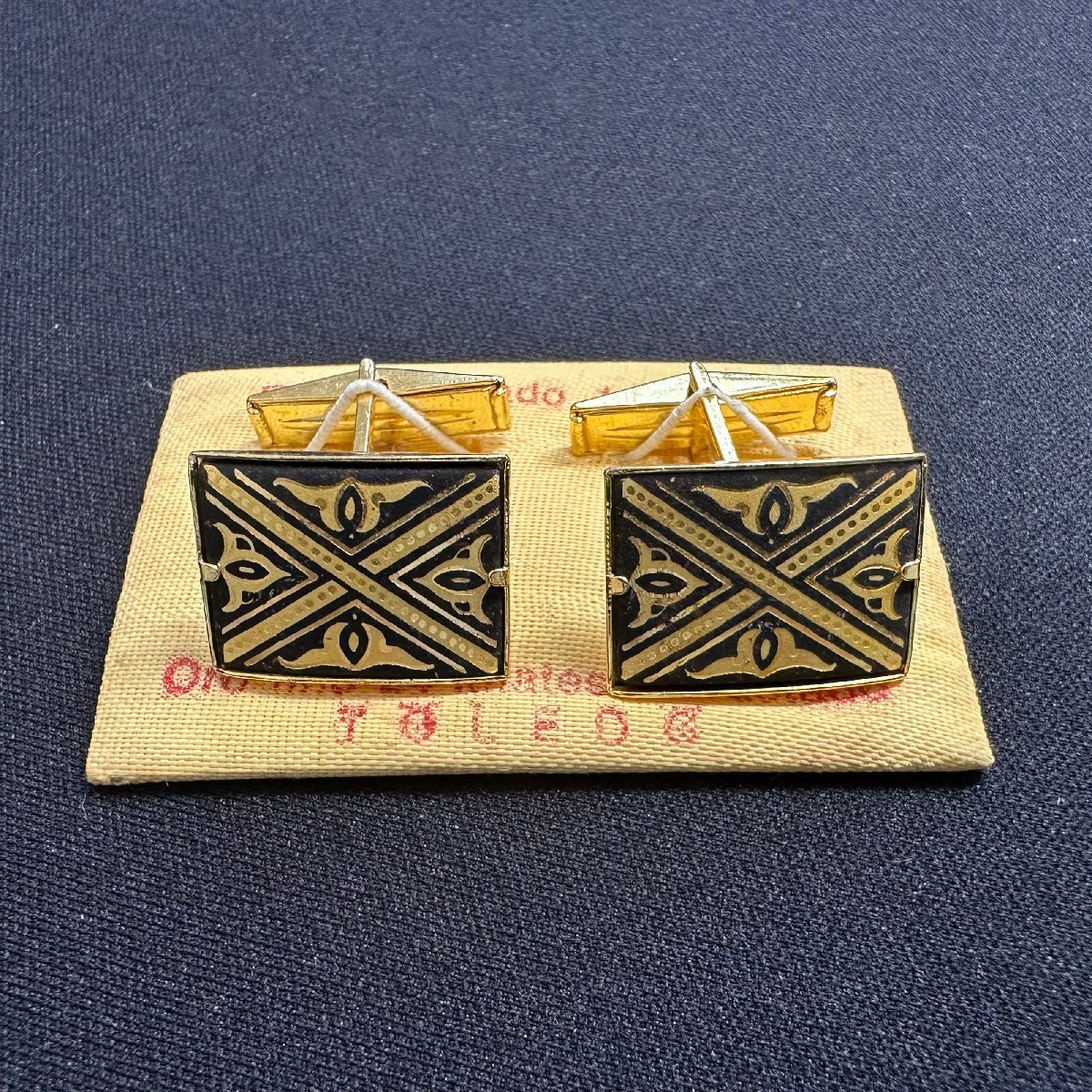 q5782 ヴィンテージ スペイン ダマスキナード カフス 象嵌