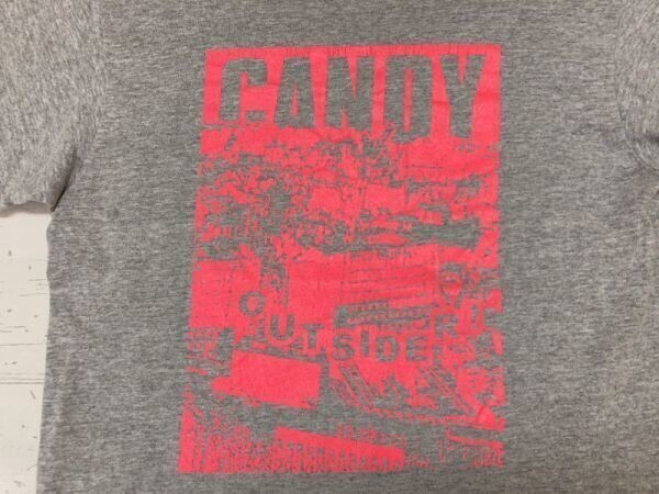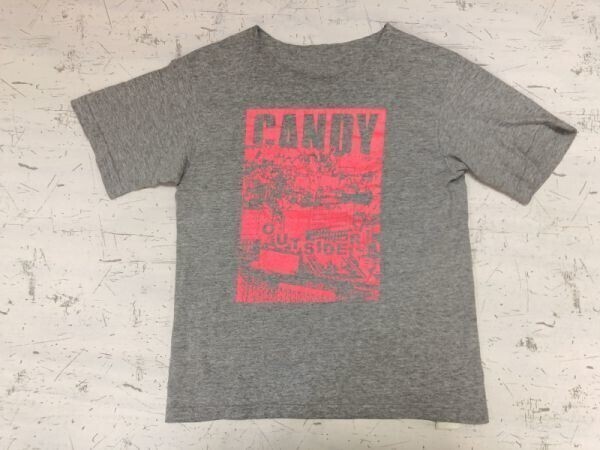 CANDY OUTSIDE パンク PUNK Y2K 00's ストリート 古着 襟切りっぱなし 半袖Tシャツ カットソー レディース グレー×ピンク