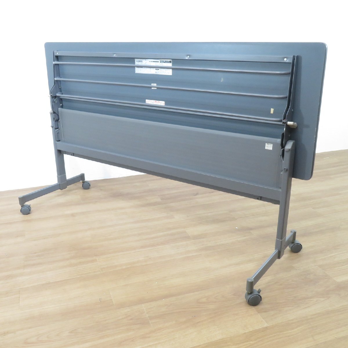 会議室、ミーティングスペース、研修室、ワークスペース等で活躍する汎用性の高いスタックテーブルです。 天板を跳ね上げて重ねて収納できるネスティング方式のため、不使用時は省スペースに収納できます。 キャスター付きで移動も容易。会議室やレイアウト変更時にも対応しやすい設計です。 網棚付きで荷物や資料を天板下に収納でき、打ち合わせ中の散らかり防止に貢献します。 幅1,800 mmでゆとりがある設計です。 |