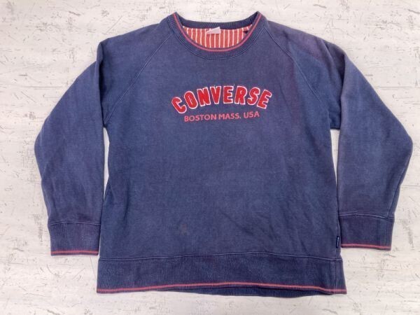 コンバース converse アメカジ ストリート 古着 ボアワッペン ロゴ スウェット トレーナー レディース 刺繍 LL 紺 です。