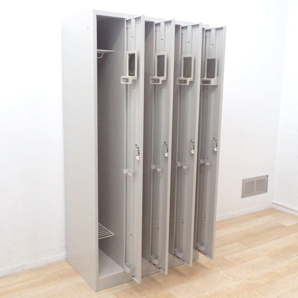 オカムラの4人用ロッカー。オフィス空間になじむグレーカラーです。 網棚から傘立てまで業務用ロッカーの基本機能が揃っています。 奥行たっぷりの51.5cm!収納力もしっかりで事務室用やスポーツ施設などに最適です。 ぜひ、更衣用ロッカーとしてご活用ください! ※写真で掲載の商品そのものが届くとは限りません。複数入荷した中の1点を掲載している場合がございます。 ※掲載画像の他にも塗装の剥がれている箇所や傷がございます。予めご理解の上、ご検討をお願いいたします。 ※傘立て・水受けが一部欠けている個室がございます。予めご理解の上、ご検討をお願いいたします。 |