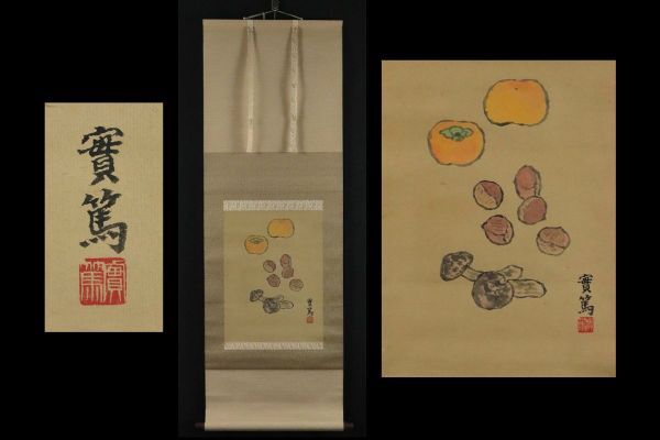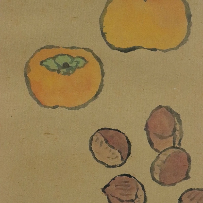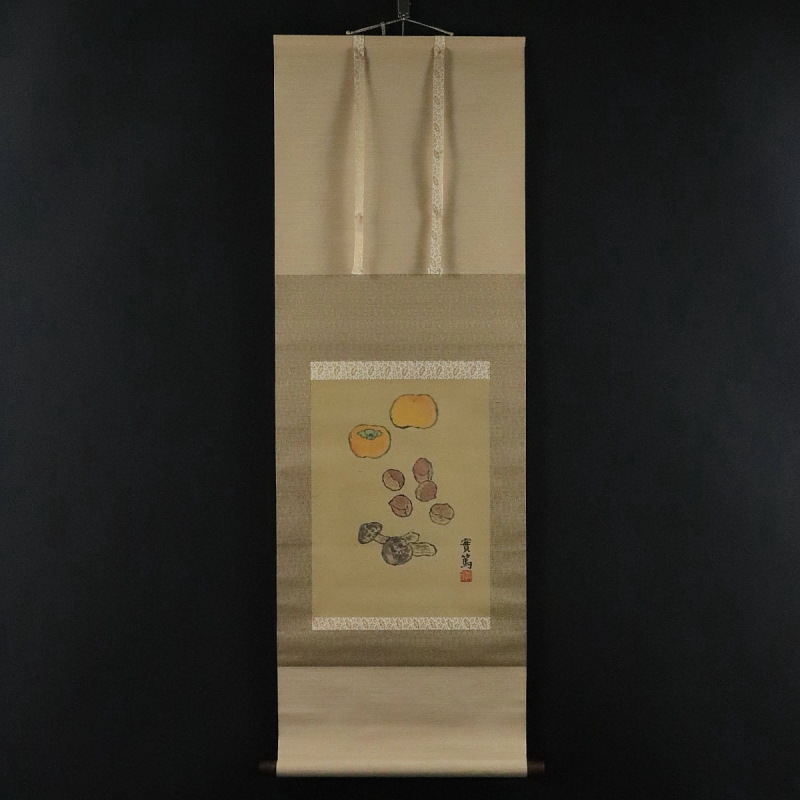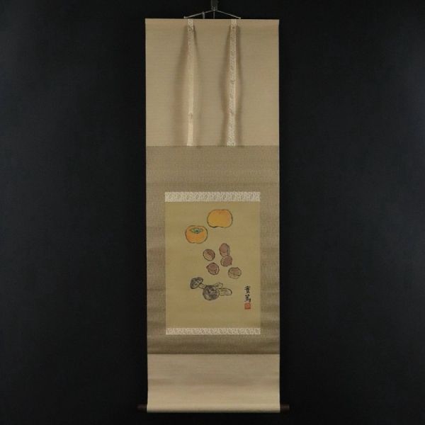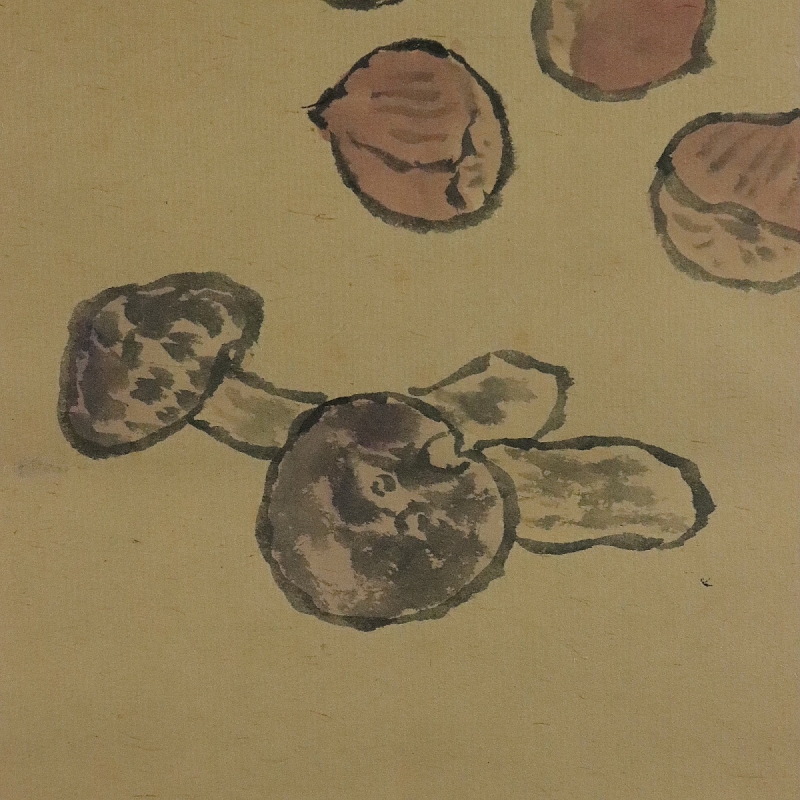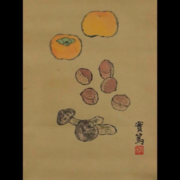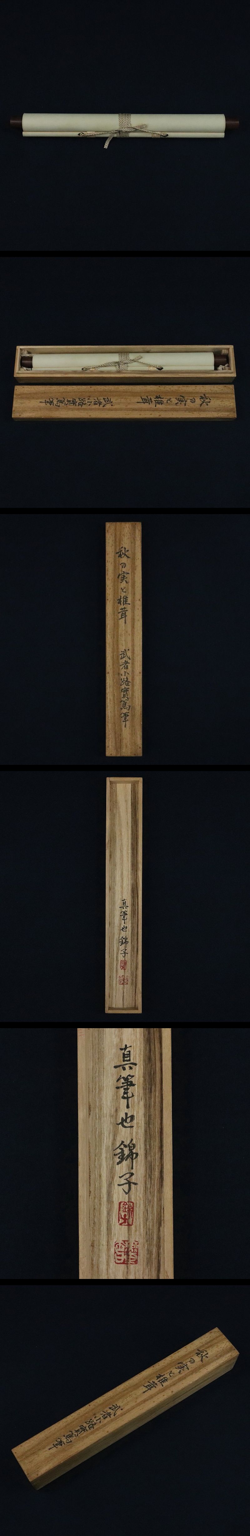 257■【真作】武者小路実篤 「秋の実と椎茸」 肉筆 木村錦子極箱 白樺派の代表的作家 小説家・劇作家 掛軸