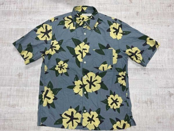 ジーユー GU フィリップパゴウスキー FILIP PAGOWSKI ストリート アート 花柄 イラスト 総柄 半袖シャツ メンズ 綿100% M ブルー です。