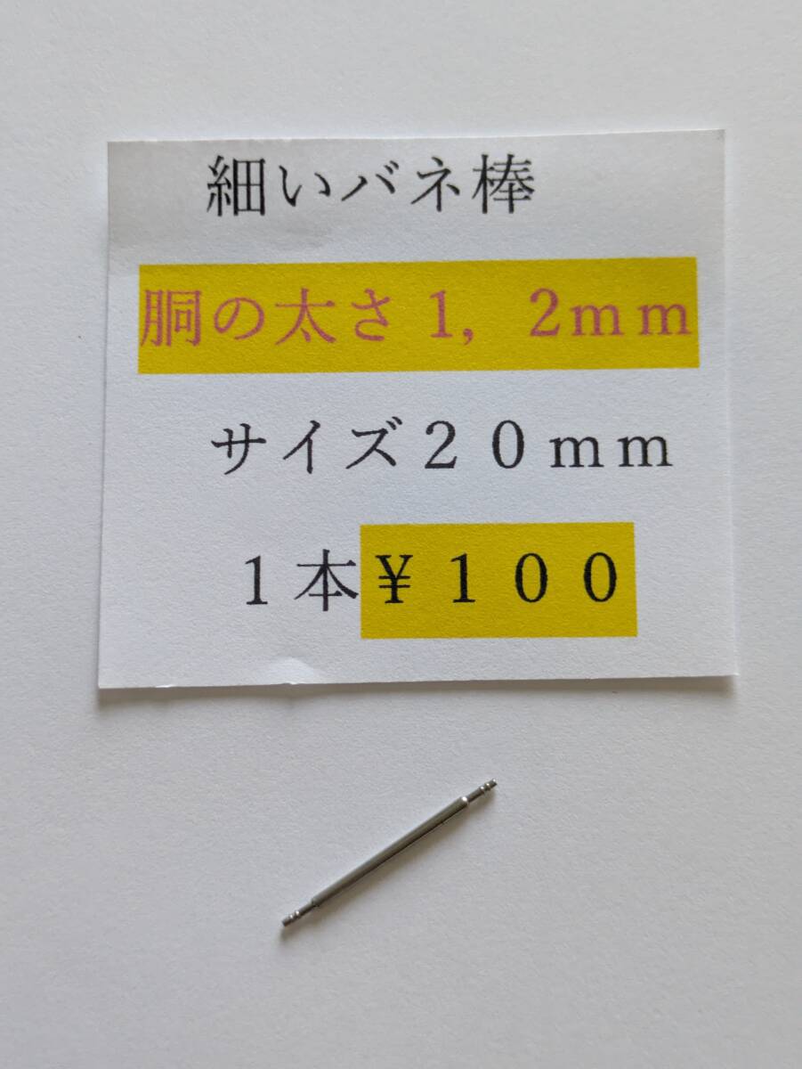 細い バネ棒  ф1,2 ラグ幅(バンド幅)20mm 1本 ¥100 腕時計 ばね棒  送料¥85 複数可