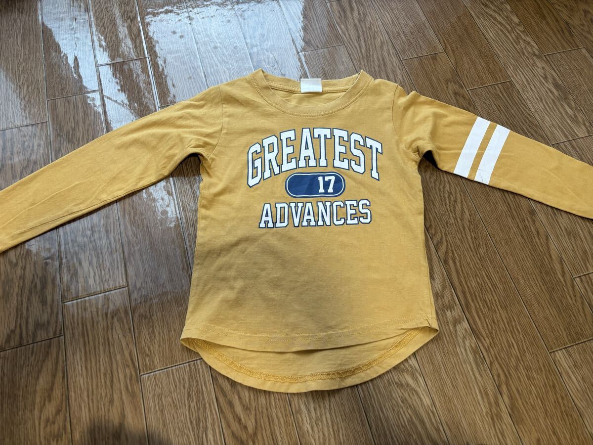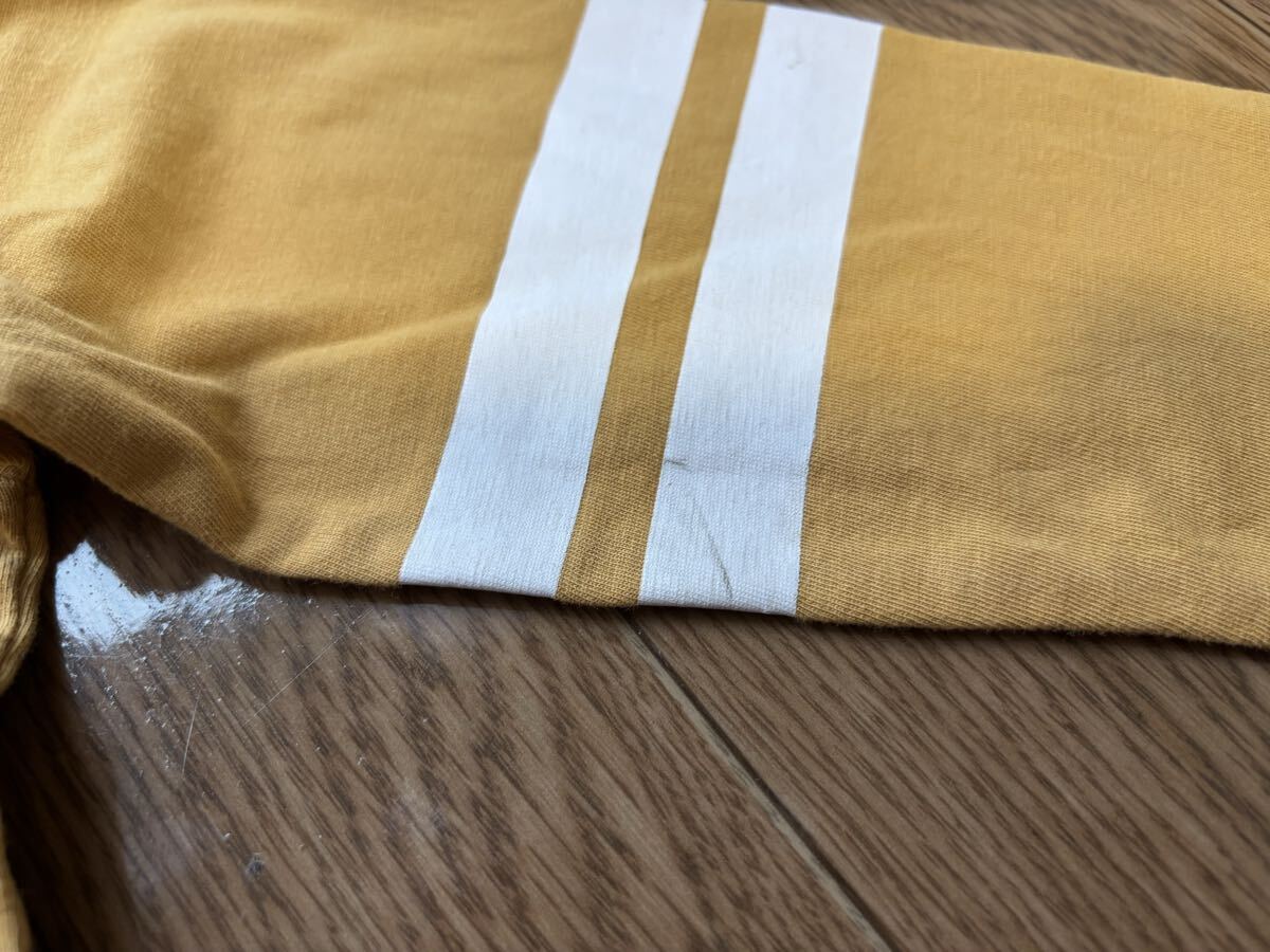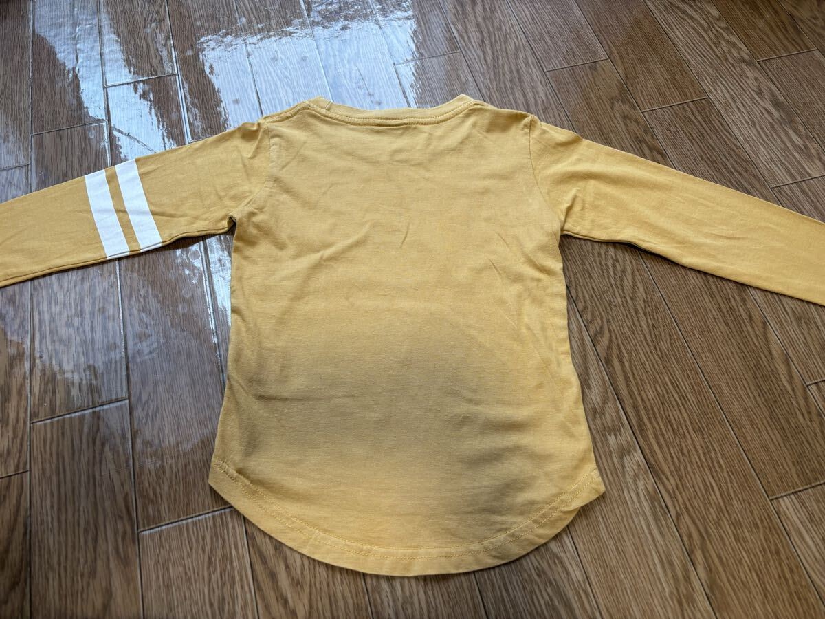 ☆ブランド・・・ブルーマート ☆お色・・・マスタード ☆サイズ・・・110 平置きの状態で、身幅・・・30cm 着丈・・・35cm 袖丈・・・37cm です。 素人寸法ですので参考程度にお考え下さい。 ☆やや薄手の長袖Tシャツです。 ☆ほつれ等の痛みはありませんが、腕の部分に線が入ったような汚れがあります。 また、多少の生地の馴染み、色褪せ、細かい毛玉等があるかと思います。 タグにシールを剥がした跡があります。 ご理解の上ご入札下さい。 ☆細かいことをお気にされる方、神経質な方は入札をご遠慮下さい。 ☆自己紹介も必ずお読み下さい。