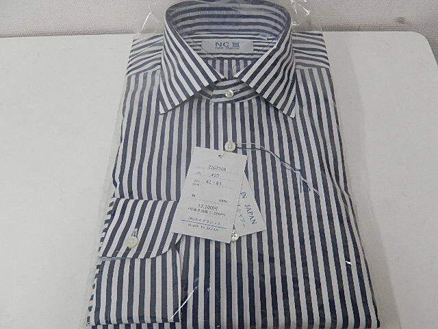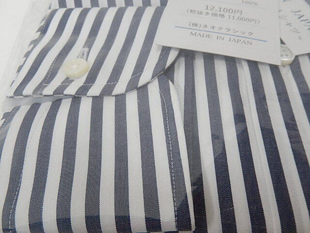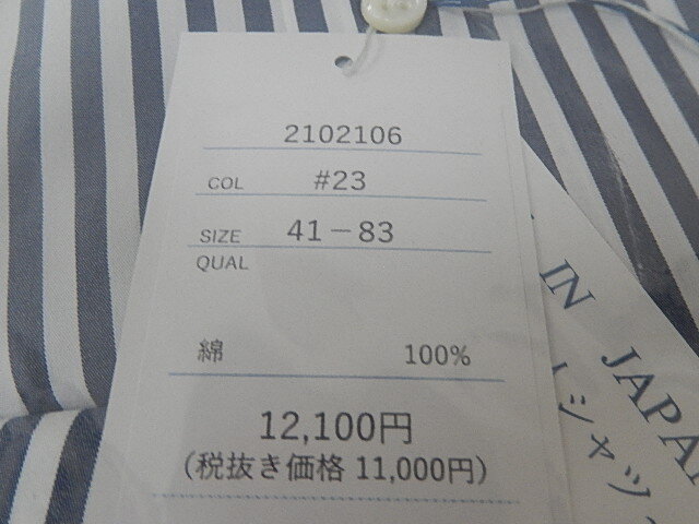 | う) 新品 未使用品 長袖 ワイシャツ ドレスシャツ ビジネスシャツ 41-83 ストライプ 青 メンズ 日本製 綿100% | |