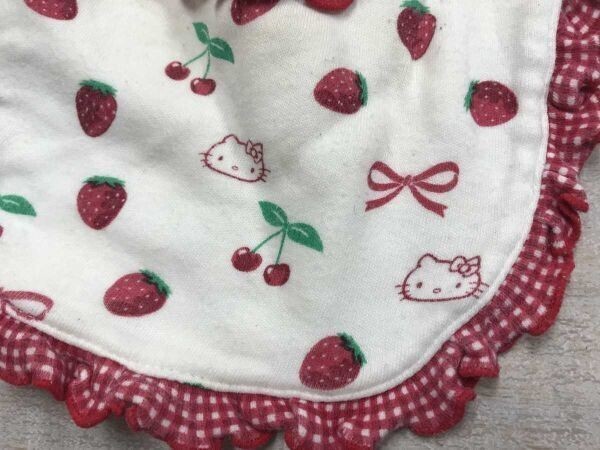 サンリオ SANRIO ハローキティ Hello kitty キャラクター ギンガムチェックフリル ベビー用品 よだれかけ スタイ キッズ コットン100% 白です。