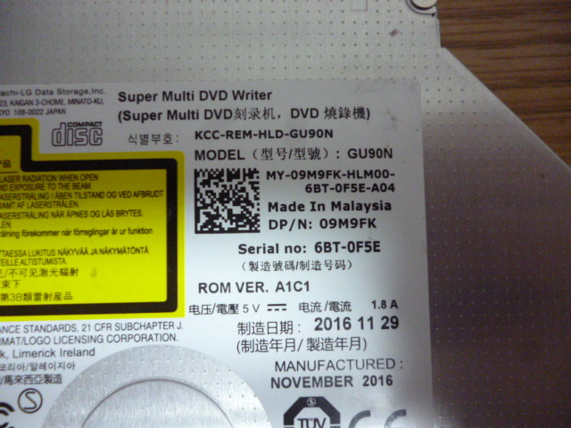 送料無料!! 1280円即決!! DELL inspiron シリーズ共通 DVDマルチ GU90N 9.5mm厚 SATA ベゼル付き inspiron3250取り外し 中古 読込確認済