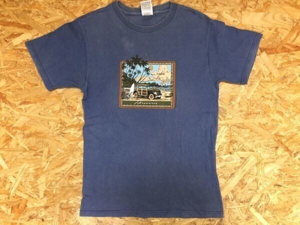 FRUIT OF THE LOOM アメカジ サーフ ハワイ アート ビーチ リゾート スーベニア 半袖Tシャツ メンズ コットン100% S 青