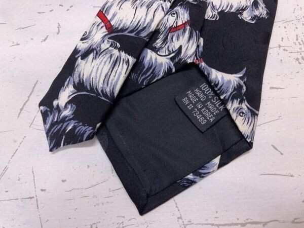 ADDICTION 犬 ワンちゃん シュナイザー ネクタイ メンズ シルク100% 韓国製 フォーマル 黒 です。