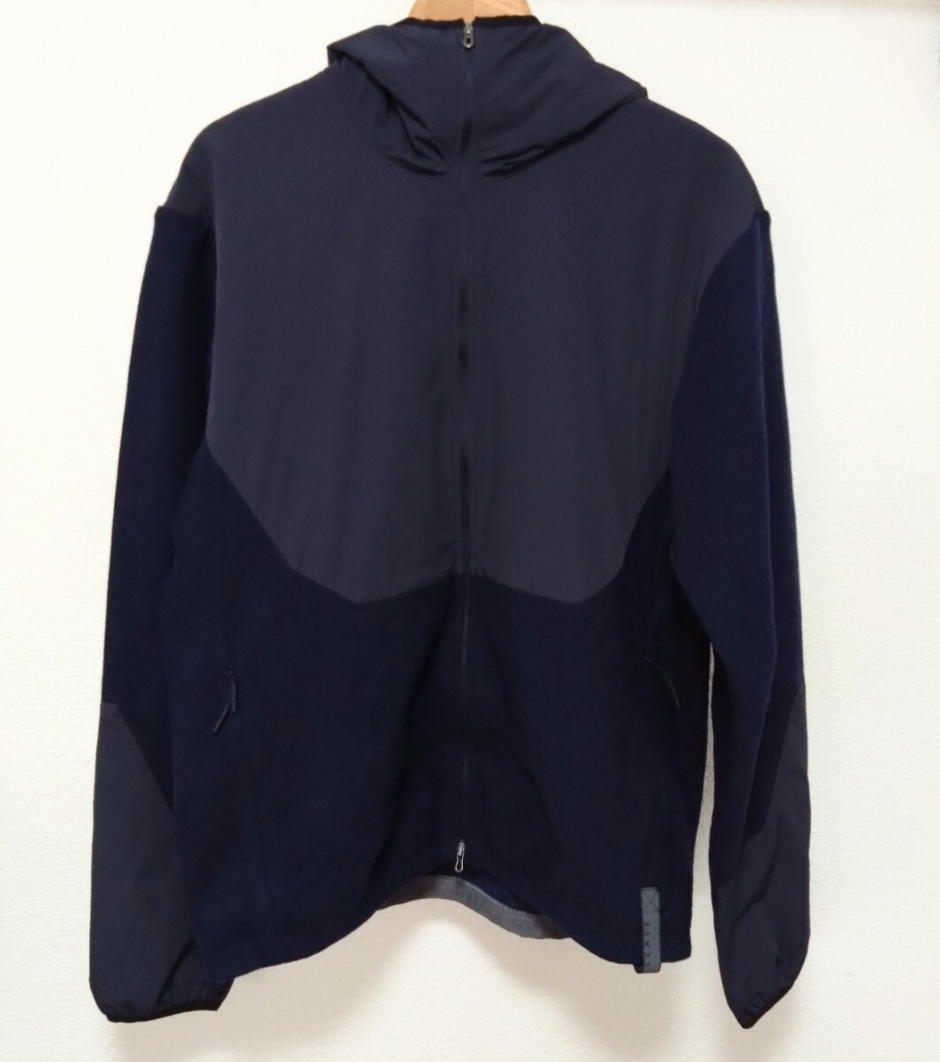 生地切り替え部分や腰ポケット周りのシャープなカッティング、フードトップやさりげなく左裾に配置されたテープ状ロゴには高次元のデザイン力を感じさせます。
