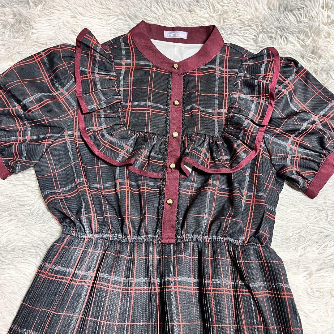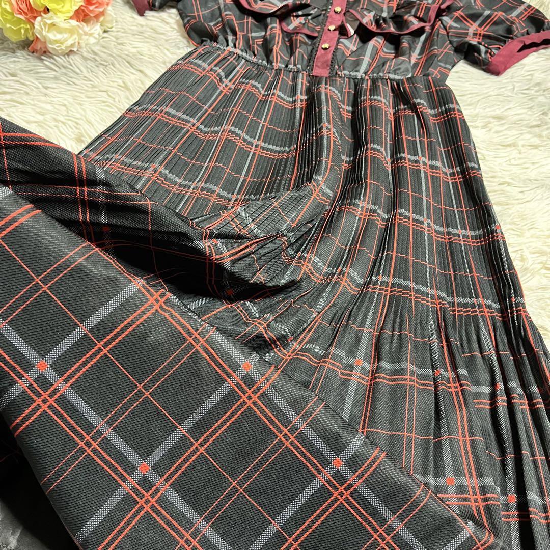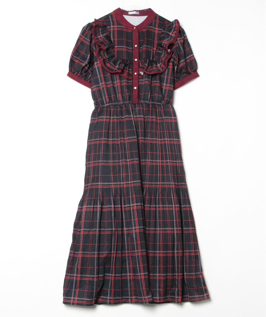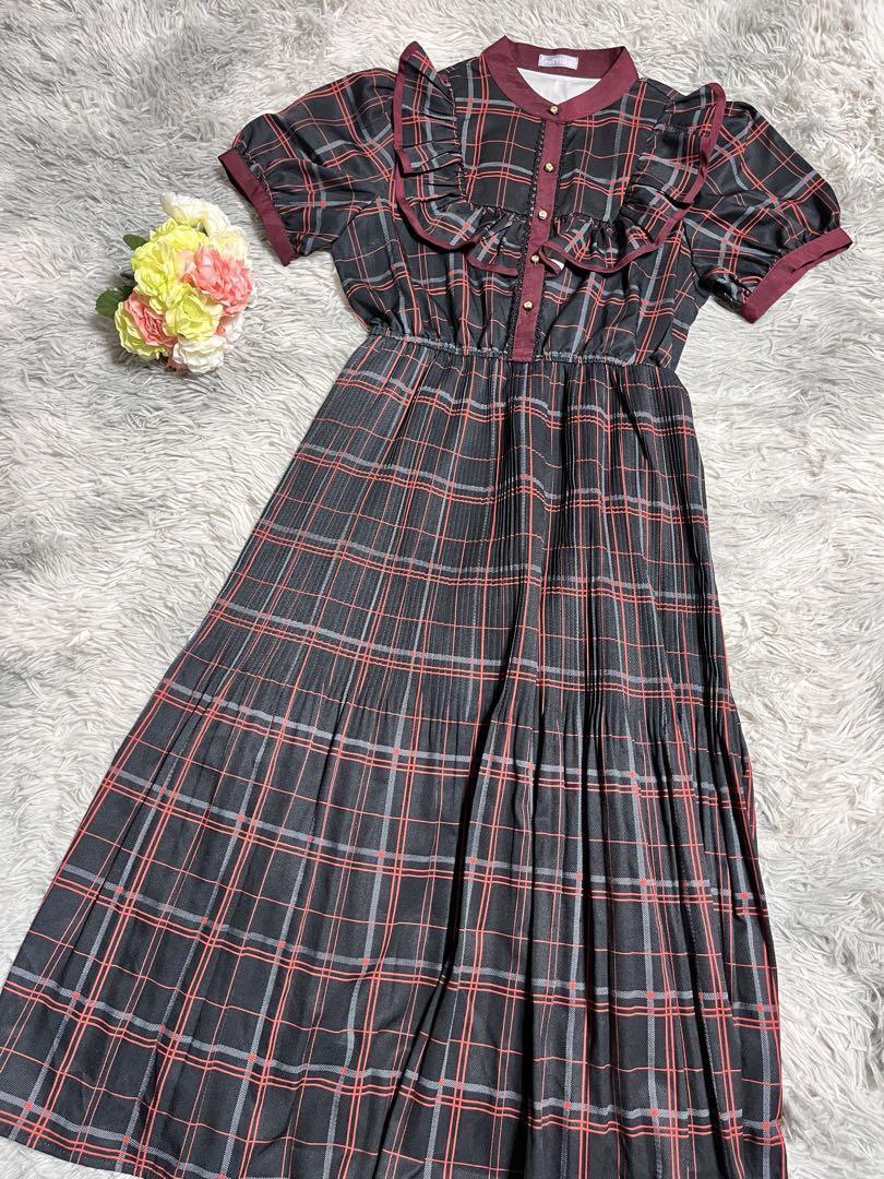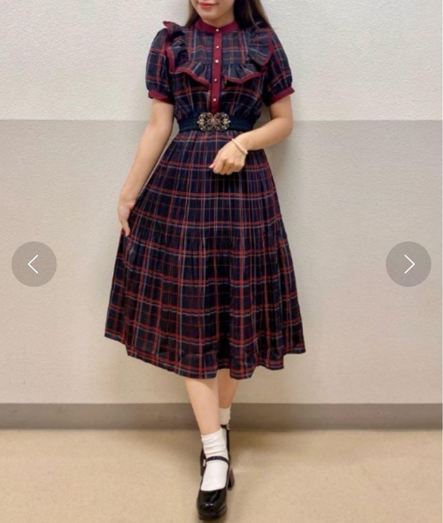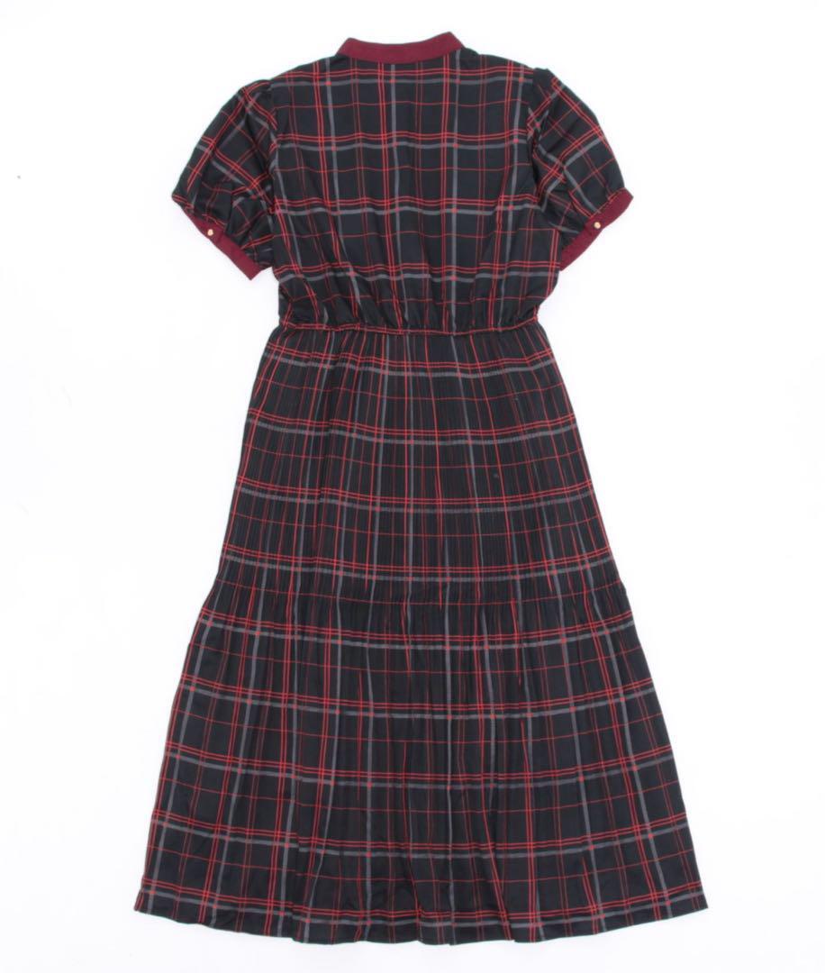 大き目のチェック柄に映える配色のパイピングデザインがレトロなワンピースです。