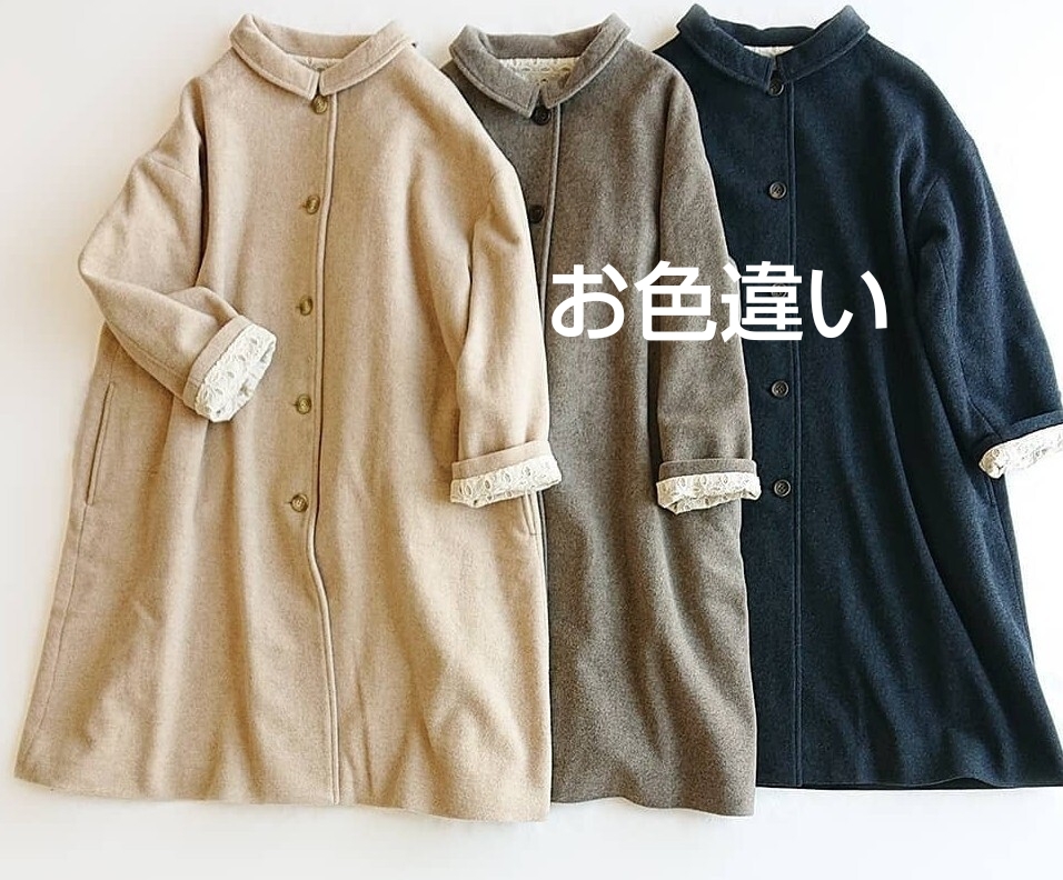 あたたかな風合いのウール混素材で上品な印象に仕上げたコート。背裏の部分にはさりげなくレースがあしらわれており、見えない部分もおしゃれに仕上げました。どんなコーディネートにも合わせやすく、防寒性も高まるロングシルエットもポイント◎洗練感のあるデザインで、オンにもオフにも幅広く活躍してくれるアイテムです。