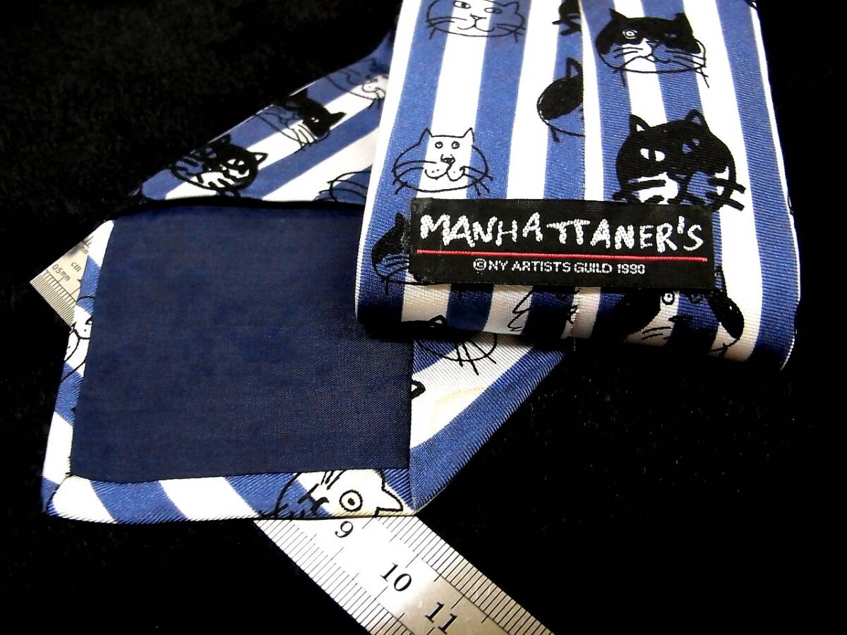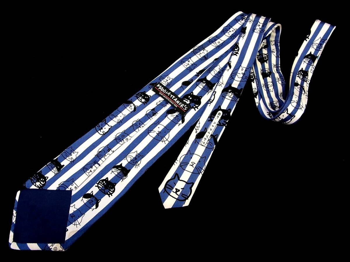 5G0774【超特売】マンハッタナーズ【猫】「猫か、ストライプか?」ネクタイ