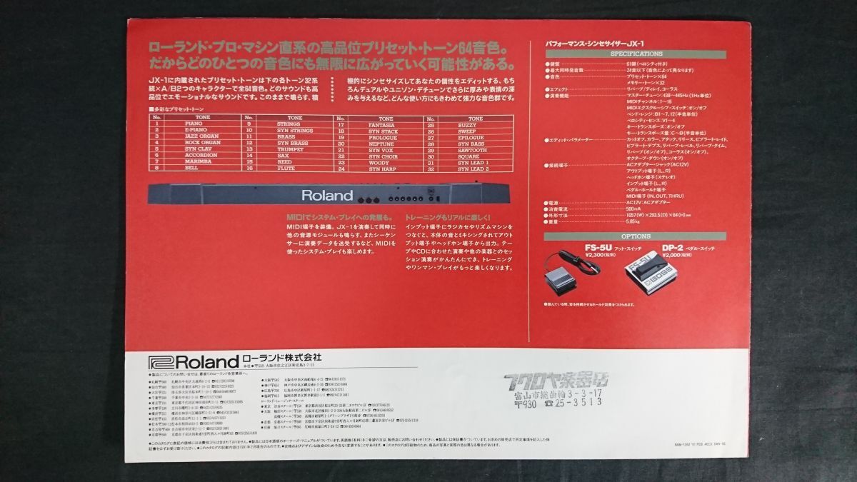 | 『ROLAND(ローランド) PERFORMANCE SYNTHESIZER(パフォーマンス シンセサイザー) JX-1 カタログ 1991年2月』ローランド株式会社 | |