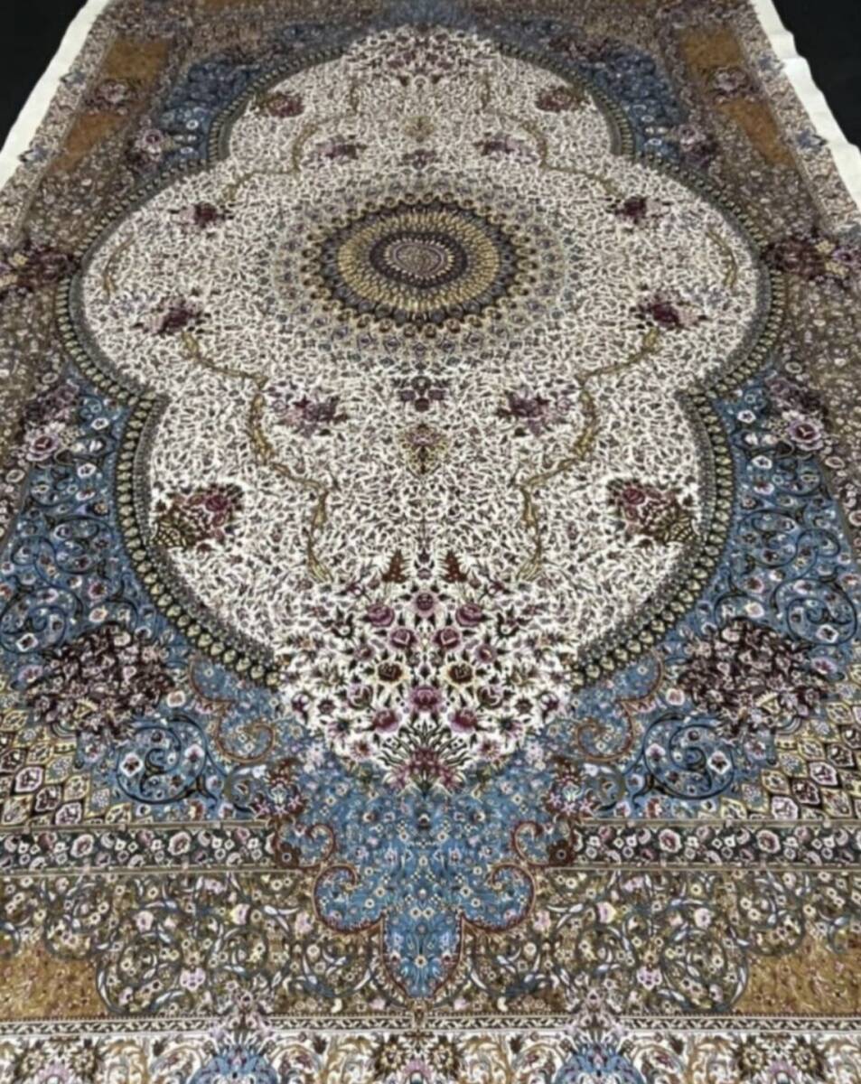 クム絨毯の歴史は1930年頃からと浅く、最初はウール絨毯を、後にシルク絨毯を織るようになりました。絹の産地としても有名なクムで、現在作られるほとんどの絨毯は100%シルク製です。