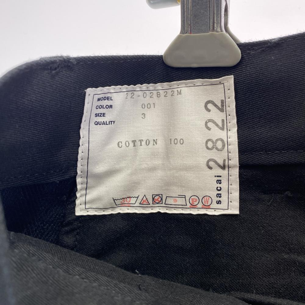 | 209999092507)SACAI KNEE ZIP BELTED PANTS サイズ3 22-02822M ブラック |