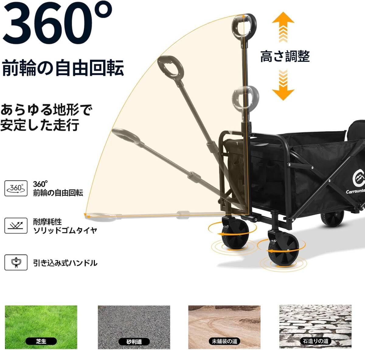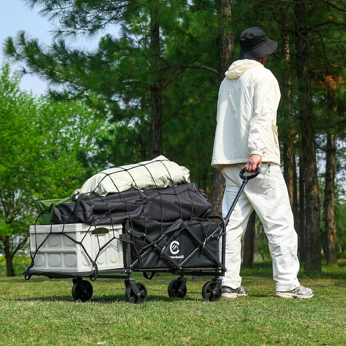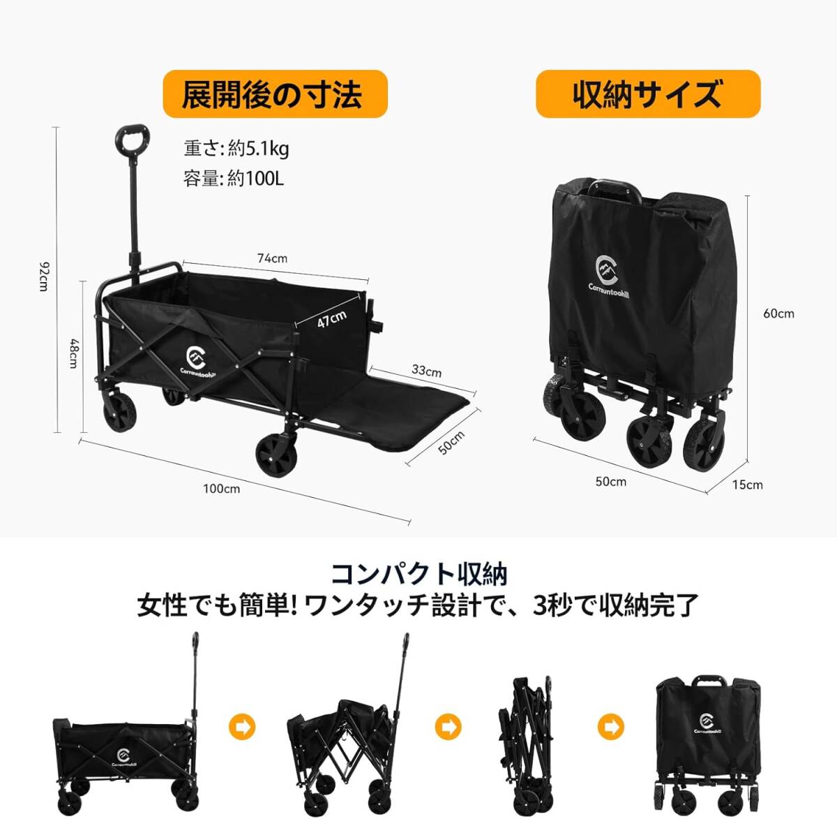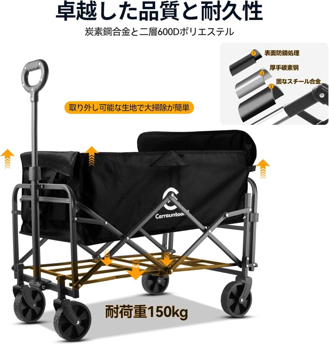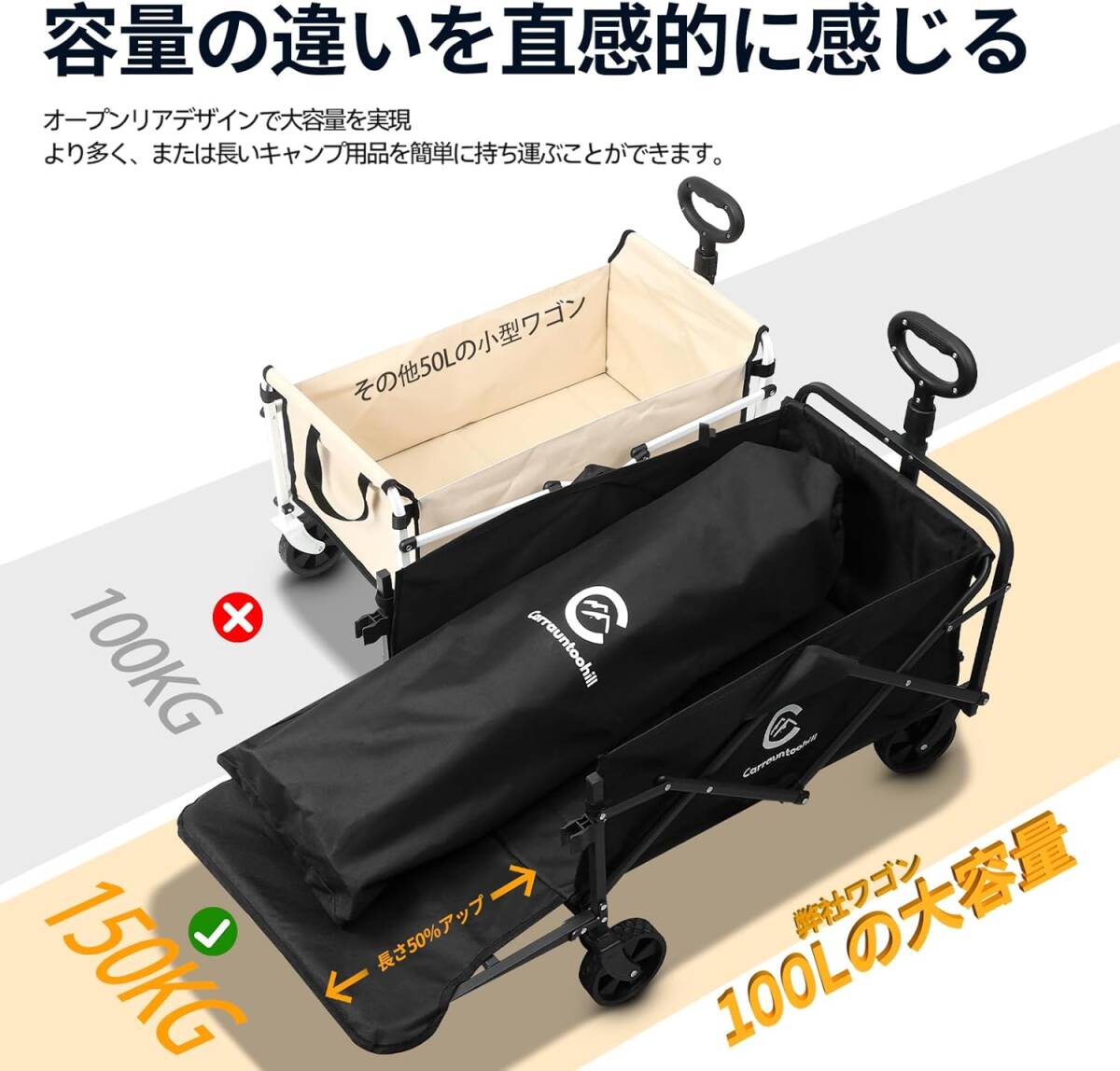 アウトドアワゴン 【後部展開可】100L大容量 輕量 折りたたみ キャリーカート 耐荷重150KG キャリーワゴン キャンプ用品長物対応