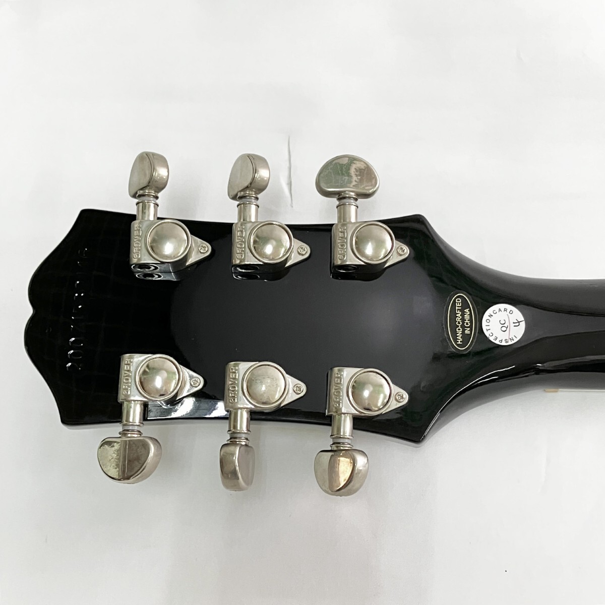王道のレスポールシェイプにバックコンターを施しチェンバード加工したうえにボディ厚を薄くして軽量に仕上げられたモデルです。
