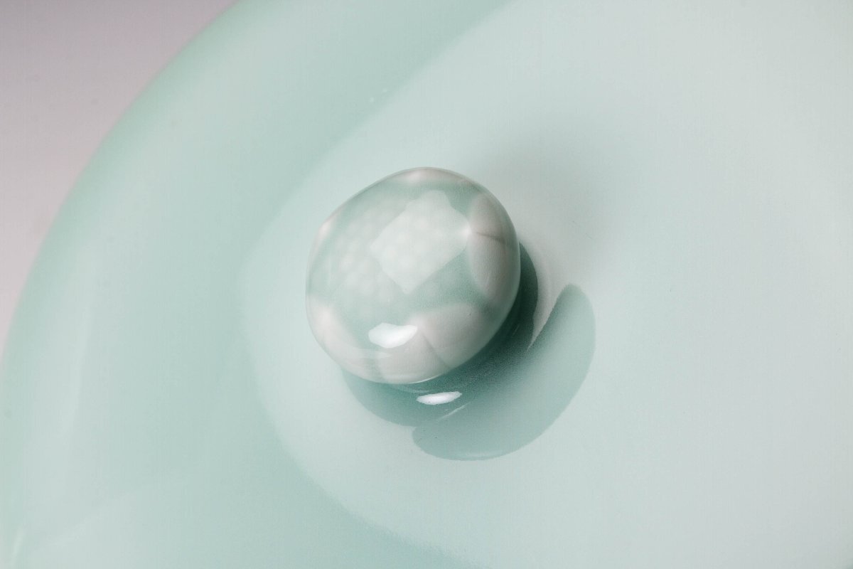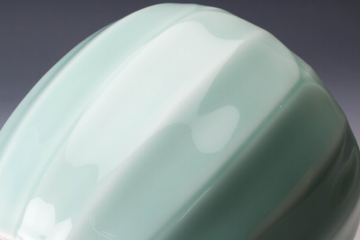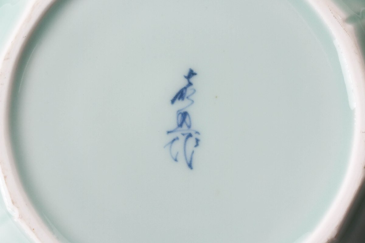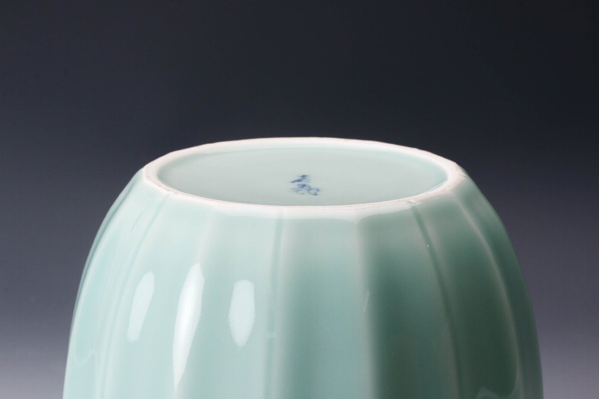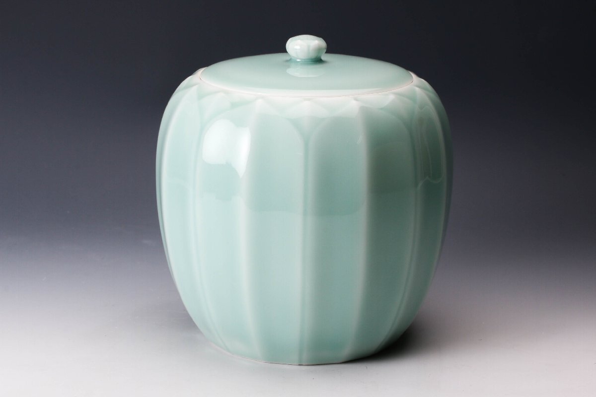 【佳香】十三代 横石嘉助 青磁蓮華彫水指 共箱 共布 茶道具 本物保証