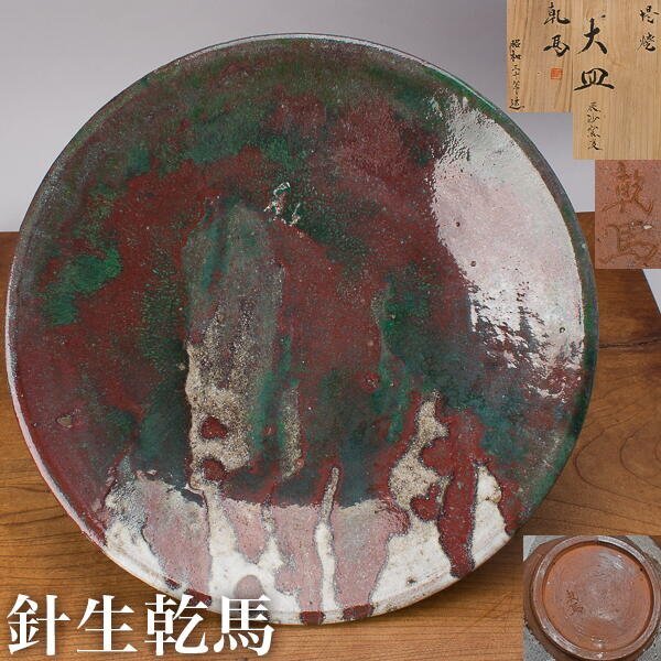 | 堤焼、針生乾馬の辰砂窯変大皿。共箱有。真作保証。 箱は共箱ですが、箱無しで販売されたものに、後に箱を合わせて作家に 箱書きをしてもらったのではないかと思います。 サイズは、幅約44.5cm、高さ約7.5cm。 傷・直しありません。 状態・詳細は、画像でご確認お願いいたします。 |