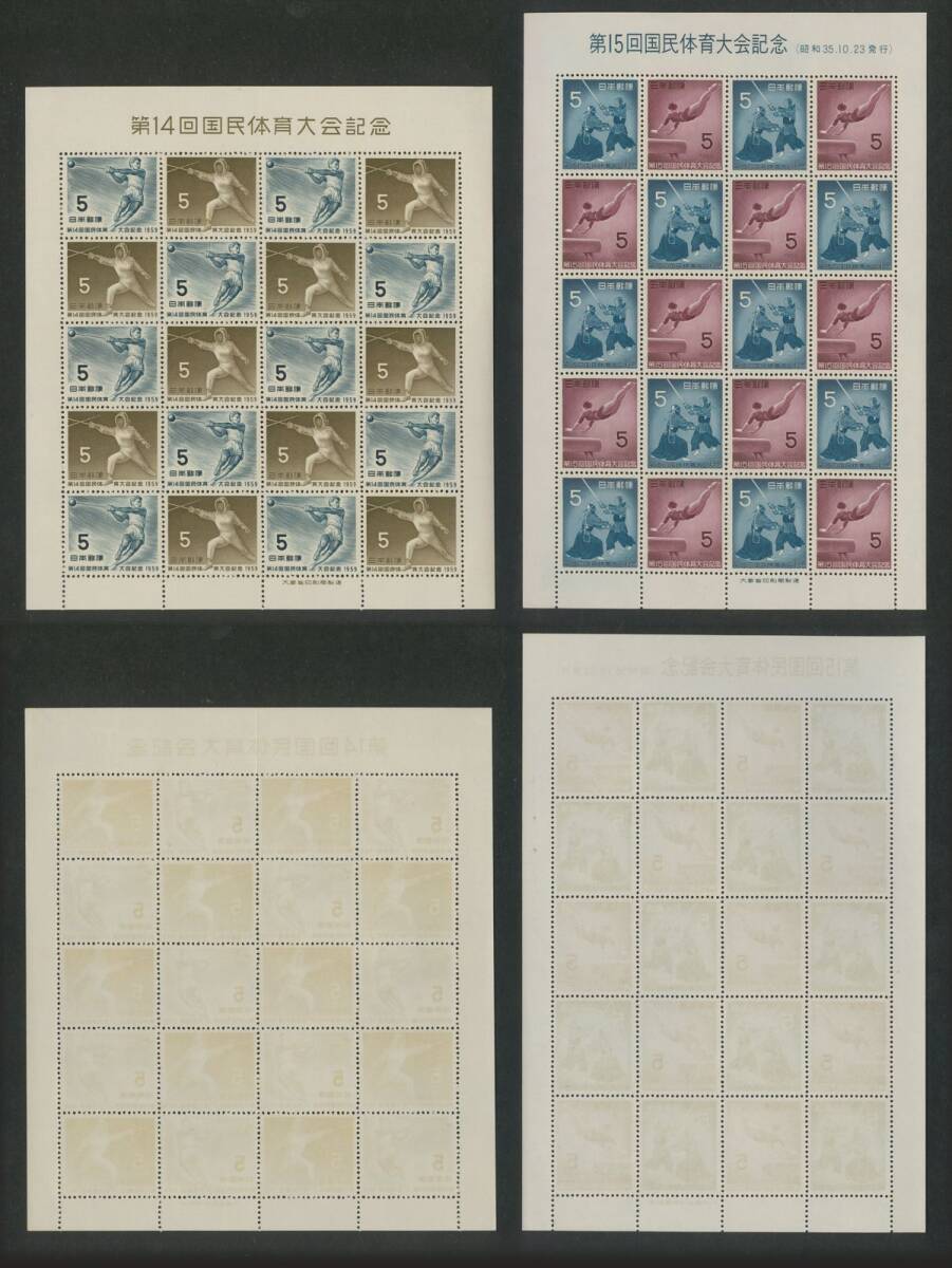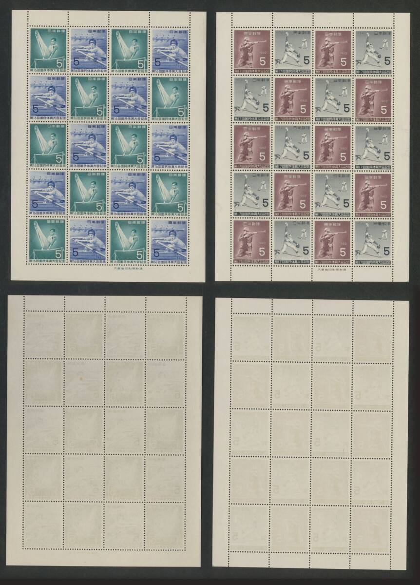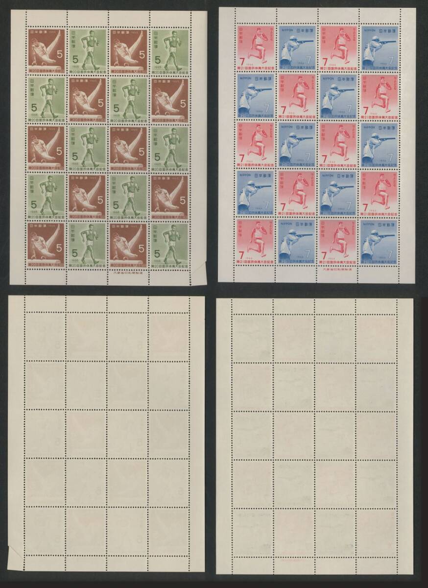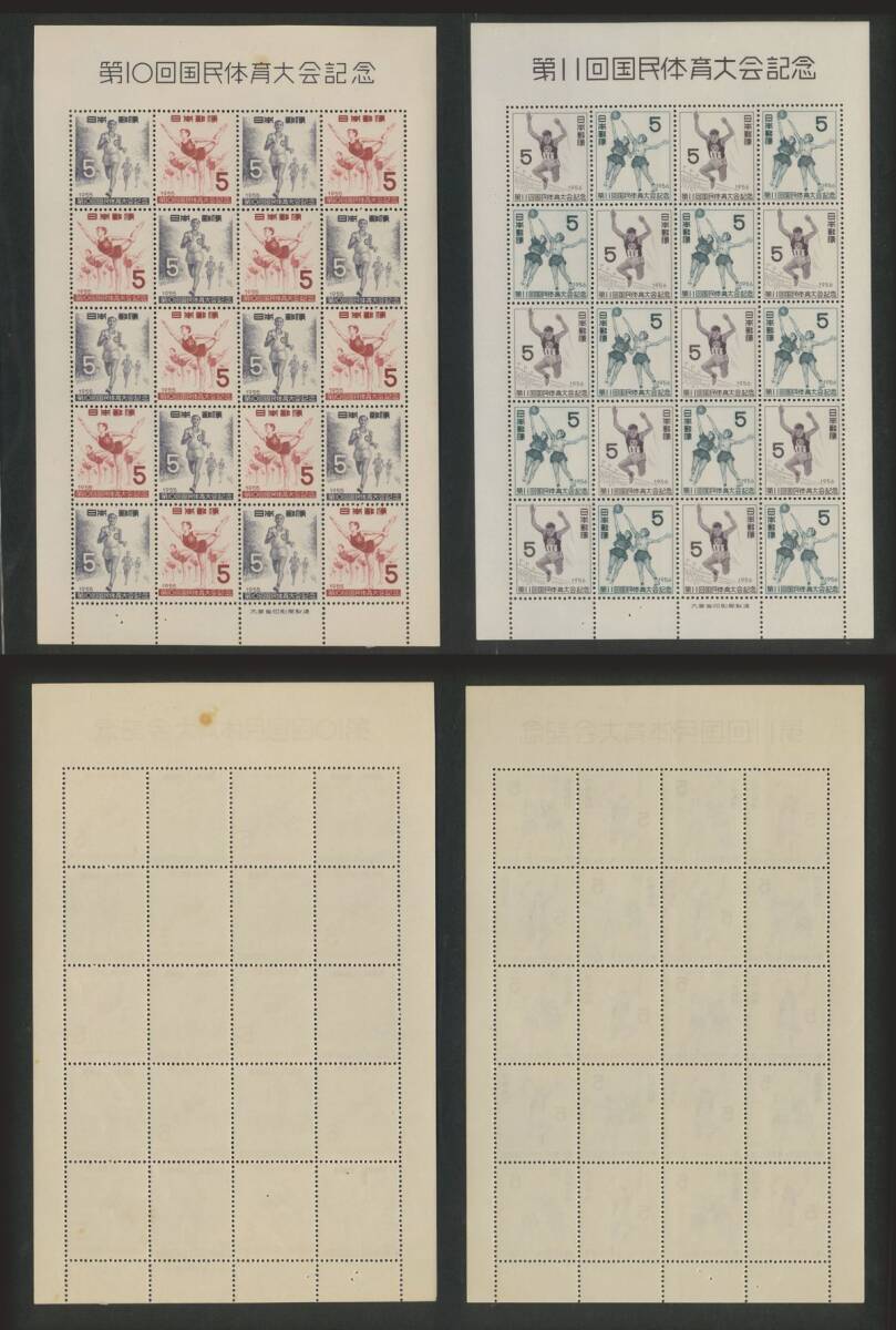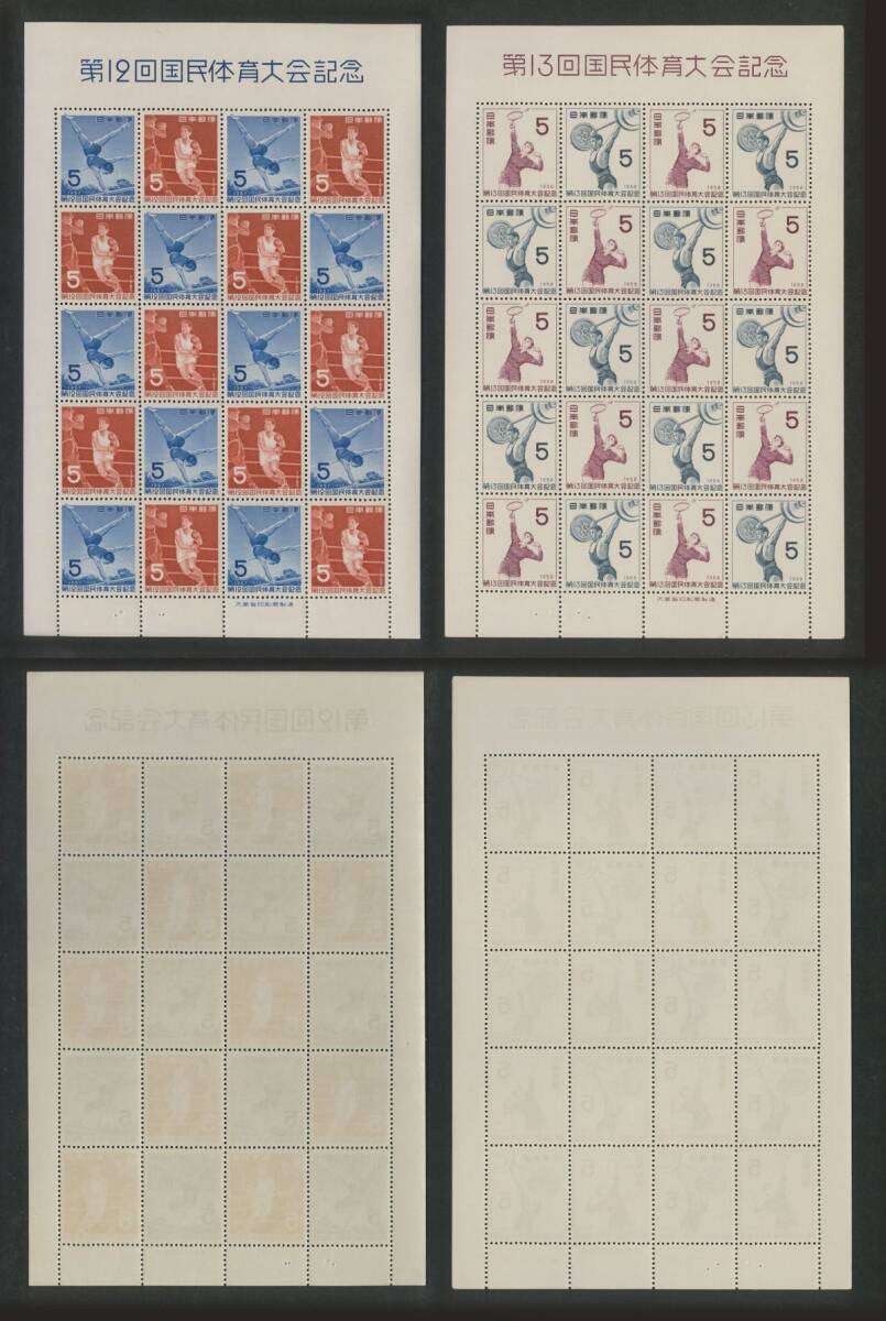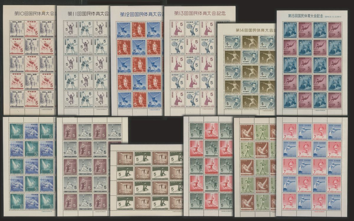 日本切手 「第10回~第21回国民体育大会記念」シート12種 5円・7円 額面2400円 未使用 状態混合(折目、シミ有)