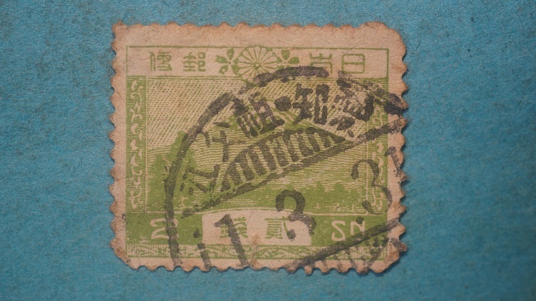 風景切手 使用済 富士山 2銭 緑 大正すかし 2