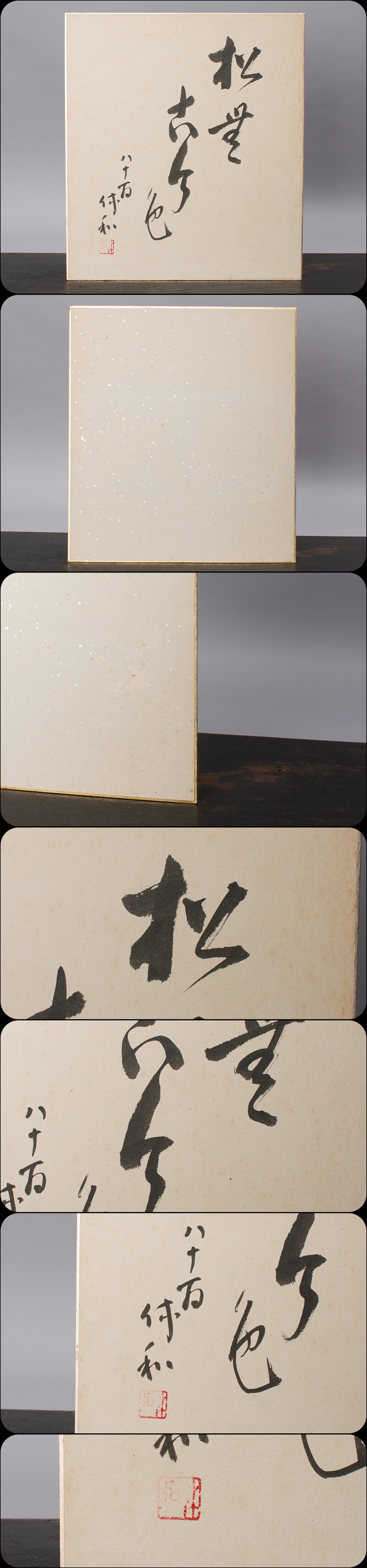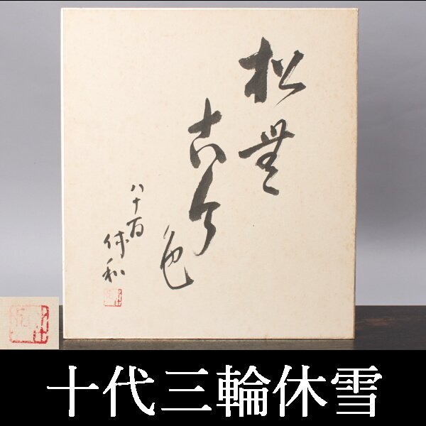 | 十代・三輪休雪(休和)の色紙。「松無古今色」。紙本肉筆。真筆保証。 サイズは、幅約27x24cm。 折れ・破れといった傷はありませんが、経年のヤケ・シミあります。 状態・詳細は、画像でご確認お願いいたします。 |